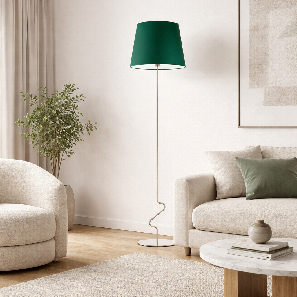 Lampa stojąca SURAT z materiałowym abażurem zieleń butelkowa