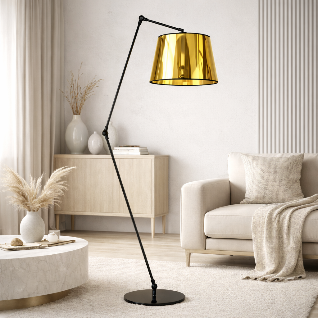 Regulowana lampa podłogowa MANILA MIRROR to idealny wybór dla osób szukających funkcjonalnego i stylowego oświetlenia. Dzięki ruchomej konstrukcji i czterem przegubom ta lampa stojąca z regulacją wysokości i kąta światła pozwala precyzyjnie dostosować kierunek oświetlenia do własnych potrzeb. Świetnie sprawdzi się jako lampa podłogowa do czytania, relaksu przy ulubionej książce, a także jako regulowana lampa stojąca do pracy przy biurku czy w domowym gabinecie. Jej praktyczny design umożliwia ustawienie światła w taki sposób, by nie męczyć wzroku, zapewniając jednocześnie odpowiednie doświetlenie przestrzeni. MANILA MIRROR to nie tylko elegancka lampa stojąca do salonu i sypialni, ale również funkcjonalny element wyposażenia nowoczesnych wnętrz, łączący wygodę użytkowania z wyjątkowym stylem industrialnym. Abażur o lustrzanej fakturze subtelnie odbija światło, a jednocześnie pozwala, by żarówka delikatnie prześwitywała przez tkaninę, dzięki czemu punkt świetlny jest widoczny i tworzy wyjątkowy efekt dekoracyjny.