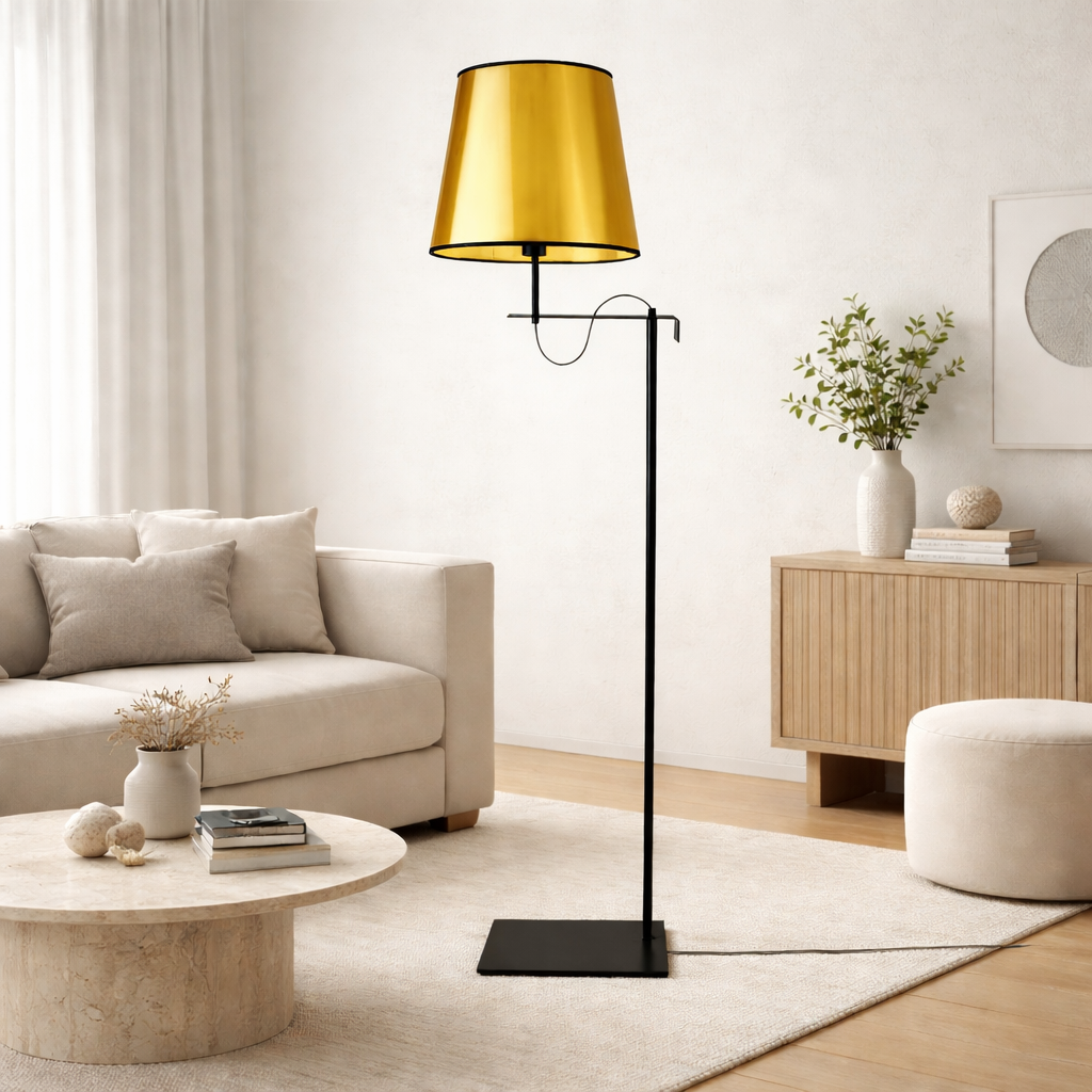 Czarno-złota lampa stojąca BATA MIRROR to wyjątkowy element oświetlenia, który doskonale sprawdzi się w aranżacjach wnętrz glamour oraz industrialnych. Jej elegancki, smukły stelaż w połączeniu z błyszczącym, złotym abażurem tworzy wyrafinowany, luksusowy akcent, który wprowadzi do pomieszczenia nutę prestiżu. W stylu glamour lampa podłogowa ze złotym abażurem podkreśli elegancję wnętrza wprowadzając ciepłe, nastrojowe światło, które idealnie współgra z połyskującymi dodatkami, aksamitnymi tkaninami i lustrzanymi powierzchniami. Złota lampa stojąca efektownie odbija światło, tworząc wyjątkowy klimat, idealny do luksusowych salonów, sypialni czy eleganckich jadalni. Z kolei w industrialnych, loftowych aranżacjach BATA MIRROR wnosi kontrast między surowymi, metalowymi elementami a ciepłym blaskiem złota. Czarno-złote wykończenie idealnie komponuje się z betonowymi ścianami, stalowymi meblami czy cegłą, dodając wnętrzu charakteru i podkreślając jego nowoczesność. Duża złota lampa stojąca świetnie sprawdzi się w przestronnych loftach, industrialnych biurach czy minimalistycznych przestrzeniach, gdzie akcenty w postaci czerni i złota wprowadzają nieco luksusu do surowego otoczenia. Dzięki swojej uniwersalnej, eleganckiej estetyce, czarno-złota lampa stojąca może być wykorzystana w wielu innych wnętrzach takich jak nowoczesne biura, gdzie stworzy stylową atmosferę czy w przestrzeniach komercyjnych – w restauracjach, hotelowych lobby czy luksusowych butikach. Świetnie wpasuje się również w eklektyczne aranżacje, gdzie różne style łączą się w harmonijną całość, dodając wnętrzu oryginalności i wyrafinowanego charakteru.