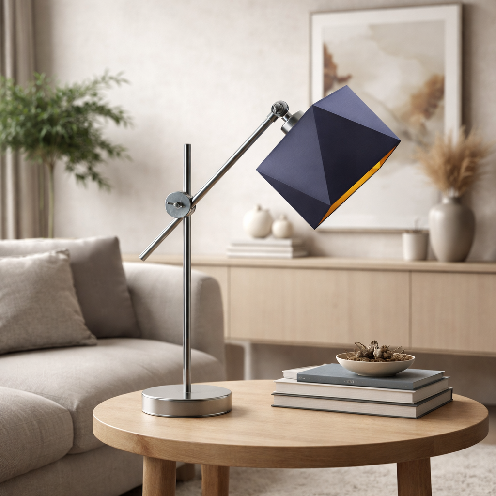 Lampki biurkowe z regulacją to wszechstronny rodzaj oświetlenia stołowego, który doskonale sprawdzi się w różnych przestrzeniach roboczych, takich jak domowe biura czy pokój młodzieżowy. Konstrukcja tej nowoczesnej lampki biurkowej BELO GOLD obejmuje metalową podstawę z regulowanym wysięgnikiem i kompaktowy klosz dostępny w kilku klasycznych kolorach. Ruchome ramię BELO zwiększa funkcjonalność oprawy, pozwalając na skierowanie światła dokładnie tam, gdzie jest aktualnie najbardziej potrzebne. Cechą charakterystyczną tego modelu jest klosz w formie diamentu ze złotym wnętrzem. Abażur z złotym wnętrzem to elegancki element oświetleniowy, który skutecznie potęguje efekt wizualny emitowanego światła. Złote wykończenie klosza nie tylko wzmacnia odbicie światła, ale także nadaje mu ciepły, złocisty ton, co przekłada się na wyjątkową atmosferę w pomieszczeniu. Zastosowanie takiego oświetlenia może znacząco podnieść estetyczny standard wnętrza, dodając mu luksusowego charakteru. Ta kombinacja designu i funkcjonalności nie tylko gwarantuje trwałość, ale również umożliwia elastyczne dostosowanie oświetlenia do indywidualnych potrzeb użytkownika. BELO wpisuje się w nowoczesne oraz minimalistyczne wnętrza, czyniąc je niezbędnym elementem każdej przemyślanej aranżacji.