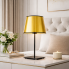 Złota lampka nocna na czarnym stelażu GENUA z linii MIRROR sprawi, że wieczorne zasypianie lub czytanie książek stanie się o wiele bardziej przyjemne i odprężające. Najbardziej przyciągającym uwagę elementem tej oprawy jest abażur, który nie tylko ociepla światło swoją złotą barwą ale również fantastycznie odbija je od swojej powierzchni wykorzystując przy tym połyskującą fakturę. Podstawa lampy jest niezwykle minimalistyczna i delikatna. Wykonana w uniwersalnym, czarnym kolorze, który wpasuje się w niemal każdy styl i kolorystykę wnętrza. Dzięki minimalistycznej formie GENUA MIRROR idealnie pasuje do nowoczesnych aranżacji wnętrz ze złotymi elementami w stylu glamour.