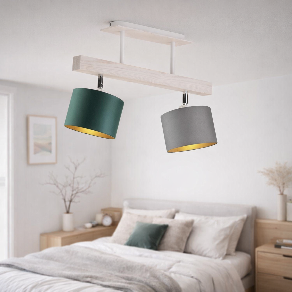 Model EPIR GOLD to praktyczna lampa sufitowa regulowana wyposażona w dwa punkty świetlne, dzięki czemu pełni funkcję 2-punktowej lampy sufitowej idealnej do równomiernego oświetlenia pomieszczenia. Regulowane abażury pozwalają skierować światło w wybrane miejsce, dlatego plafoniera doskonale sprawdzi się jako lampa sufitowa do salonulampa sufitowa do kuchnilampa sufitowa do sypialnilampa sufitowa do pokoju młodzieżowego czy lampa sufitowa do przedpokoju. Zastosowanie złotego wnętrza abażuru sprawia, że światło jest cieplejsze i bardziej nastrojowe, a sama lampa staje się dekoracyjną lampą sufitową z abażurem. Do wyboru dostępnych jest pięć eleganckich wariantów abażuru: biały ze złotym wnętrzemszary stalowygranatowyzieleń butelkowa oraz czarny ze złotym wnętrzem, dzięki czemu łatwo dopasować lampę do różnych aranżacji. Drewniana podstawa dostępna jest w kolorach białypopielatydąbmahoń oraz heban, co sprawia, że jest to uniwersalna drewniana lampa sufitowa do nowoczesnych i klasycznych wnętrz.