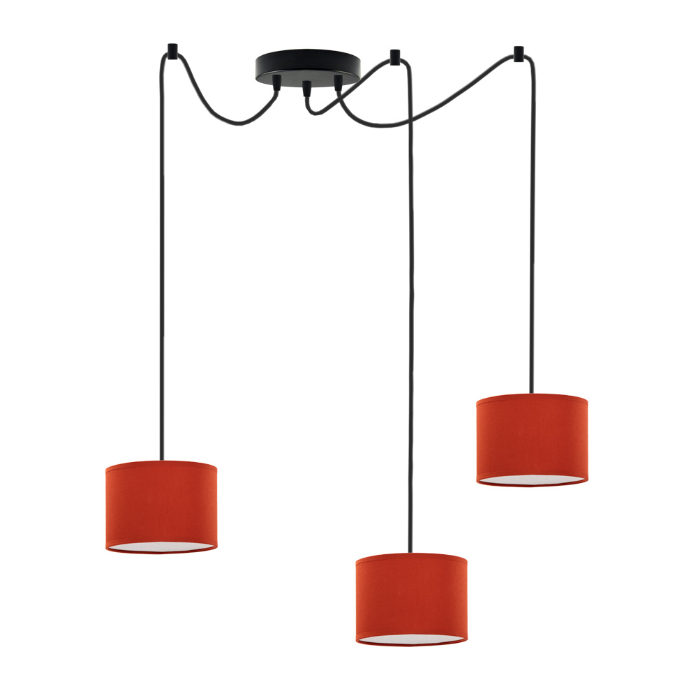 WAIKIKI W3 to kolejna propozycja wśród lamp wiszących typu PAJĄK. Żyrandol ten cechuje się niezwykłą prostą i minimalistyczną formą. Lampa składa się z trzech przewodów o maksymalnej długości 200 cm, zakończonych abażurami, które mocowane są na oprawki o gwincie E27. Moc żarówek to 60W lub odpowiednik żarówek LED. Cylindryczne abażury o średnicy 17,5 cm wykonane są z holenderskiej tkaniny tekstylnej i dostępne w 18 wariantach kolorystycznych.  Designerska lampa o trzech punktach świetlnych pozwala na oświetlenie znacznej powierzchni wnętrza. Żyrandole typu PAJĄK cechują się ogromną funkcjonalnością, a to za sprawą przewodów, których ułożenie możemy w dowolny sposób zmieniać i formować, w zależności od wizji i potrzeby. Dołączone do zestawu uchwyty montażowe pozwalają na łatwe mocowanie lampy. Dzięki nim rozplanujesz dowolne rozstawienie "ramion" i dostosujesz kąt padania światła.