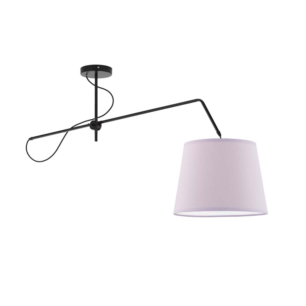 OVIEDO to funkcjonalność w nowoczesnym wydaniu. Oświetlenie od designerskiej marki LYSNE.PL z Częstochowy wyróżnia się nietypową konstrukcją. Podsufitka lampy wyposażona jest w regulowany element, który umożliwia manewr w płaszczyźnie góra – dól. Lampa posiada zmienne wymiary, a w pozycji wyjściowej ukazanej na zdjęciu głównym ma około 55 cm wysokości i około 130 cm szerokości. Dzięki temu żarówka może znajdować się na różnej wysokości, idealnie rozprowadzając światło na całą powierzchnię pomieszczenia. OVIEDO to także klasyczny, kontrastujący z nowoczesną konstrukcją stożkowy abażur wysoki na 28 cm o szerokości dolnej średnicy równej 37 cm. Możesz wybierać spośród kilkunastu wersji kolorystycznych materiałowego klosza: białej, ecru, jasnej szarej (gołębiej), miętowej, musztardowej, jasnej różowej, jasnej fioletowej, beżowej, szarej stalowej, czerwonej, niebieskiej, fioletowej, butelkowej zieleni, granatowej, grafitowej, brązowej, czarnej oraz tzw. betonowej. Dostępne są również 3 rodzaje metalowych stelaży: biały, czarny, srebrny. Żyrandol z regulacją wysokości OVIEDO jest dostosowany do żarówek o gwincie E27 o klasach energetycznych od A do G.