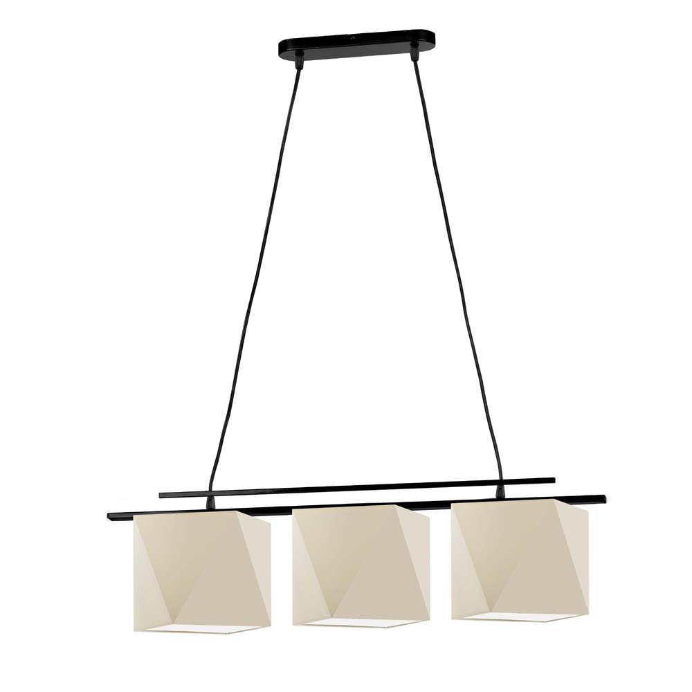 MALIBU to propozycja nowoczesnego oświetlenia kuchennego od LYSNE.PL, która wyróżnia się trzema diamentowymi abażurami z holenderskiej tkaniny tekstylnej i nowatorską konstrukcją. Punkty świetlne lampy zostały symetrycznie rozłożone na 77-centymetrowej, metalowej belce. Całość jest podwieszona na zaokrąglonej, subtelnej podsufitce. Żyrandol w nowoczesnym stylu MALIBU ma regulowaną wysokość do maksymalnie 120 centymetrów. Dzięki możliwości wyboru koloru stelaża oraz abażurów masz okazję skomponować własną, wyjątkową iluminację wnętrza. W naszej ofercie znajdziesz kilkanaście odcieni kloszy (biały, ecru, jasny szary (gołębi), miętowy, musztardowy, jasny różowy, jasny fioletowy, beżowy, szary (stalowy), czerwony, niebieski, fioletowy, zieleń butelkowa, granatowy, grafitowy, brązowy, czarny i szary melanż (tzw. beton)) oraz trzy klasyczne warianty konstrukcji lampy — biały, srebrny, czarny. Do lampy wiszącej do kuchni MALIBU pasują żarówki o tzw. grubym gwincie E27 i klasach energetycznych od A do G lub żarówki LED. Oprawa może poszczycić się metką „made in Poland” oraz 2 letnią ochroną gwarancyjną.