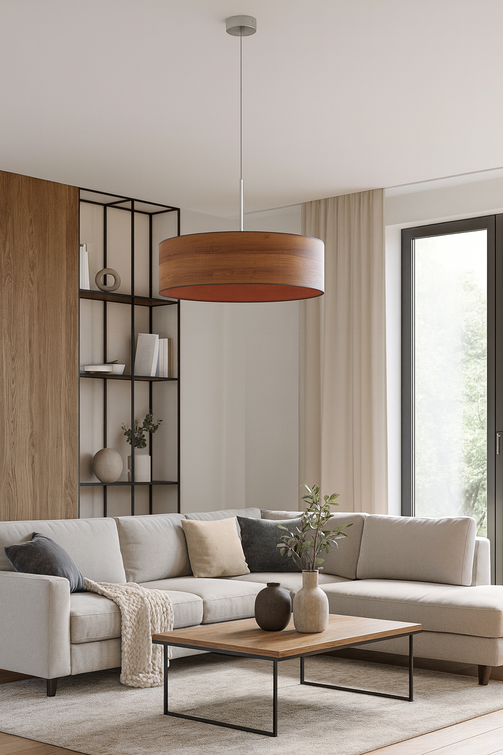 Nowoczesna lampa wisząca HAJFA z kolekcji ECO to idealne połączenie minimalizmu, ekologicznego designu i najwyższej jakości wykonania. Jej elegancki, owalny abażur o średnicy 60 cm wykonano z materiału imitującego naturalny fornir, który subtelnie rozprasza światło tworząc we wnętrzu przytulny nastrój. To wyjątkowy model, który doskonale odnajdzie się w roli lampy wiszącej do salonu, oświetlenia do sypialni czy lampy nad stół w jadalni. Wyróżnia ją prostota i nowoczesność – cechy charakterystyczne dla stylu skandynawskiego i eco designu, które wnoszą do wnętrz harmonię, ciepło i naturalne piękno. Dzięki swojej uniwersalnej formie, HAJFA ECO fi - 60 cm z powodzeniem wkomponuje się zarówno w nowoczesne aranżacje jak i w klasyczne przestrzenie inspirowane naturą.