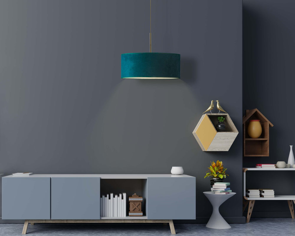 Welurowa lampa wisząca SINTRA VELUR to najnowsza propozycja polskiego producenta oświetlenia LYSNE.PL. Żyrandol ten to niezwykły model lampy, w którym abażur pokryty jest przyjemnym w dotyku welurem. Cylindryczny abażur o aksamitnej fakturze znakomicie podkreśla elegancki charakter pomieszczenia. Żyrandol do salonu SINTRA VELUR to również wyjątkowy dodatek dekoracyjny, który z łatwością wpisze się w wiele styli wnętrzarskich. Doskonale będzie prezentował się w modernistycznym salonie czy nowoczesnej sypialni. Welurowy abażur dostępny jest w 3 wariantach kolorystycznych (granatowym, zieleni butelkowej i szarości). Dodatkowym atutem lampy wiszącej jest możliwość wyboru koloru wnętrza (środka) abażura - złotego lub białego.