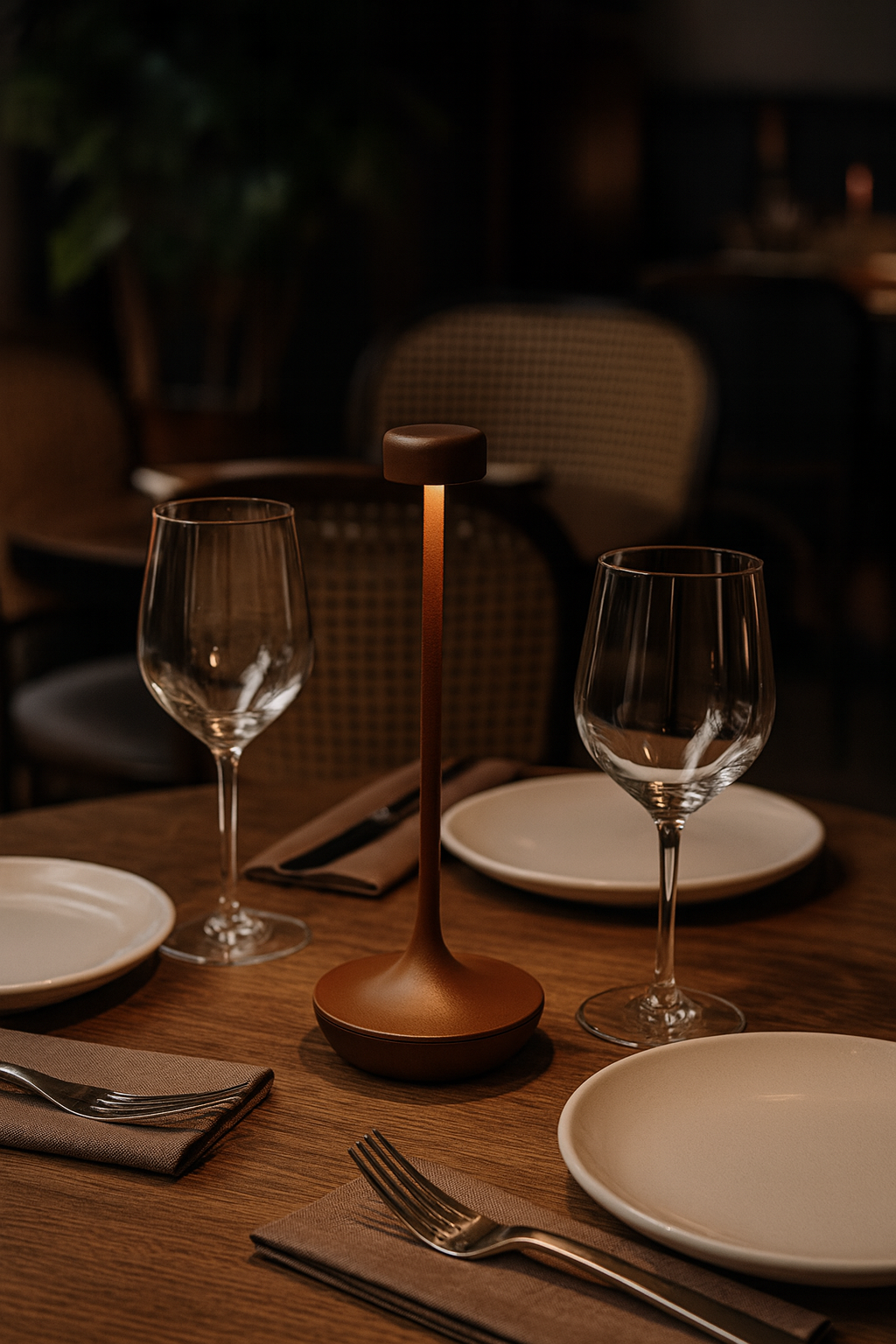 DECA  akumulatorowa lampa stołowa bezprzewodowa led to połączenie elegancji, funkcjonalności i niezawodności stworzone specjalnie dla branży HoReCa. Jej minimalistyczny design dostępny w trzech wykończeniach – matowa czerńperłowa biel oraz corten o efekcie rdzy – sprawia, że doskonale komponuje się zarówno z nowoczesnymi jak i klasycznymi aranżacjami wnętrz. To idealna lampa stołowa do restauracji, hoteli, kawiarni i barów, która nie tylko oświetla przestrzeń ale również buduje wyjątkową atmosferę.