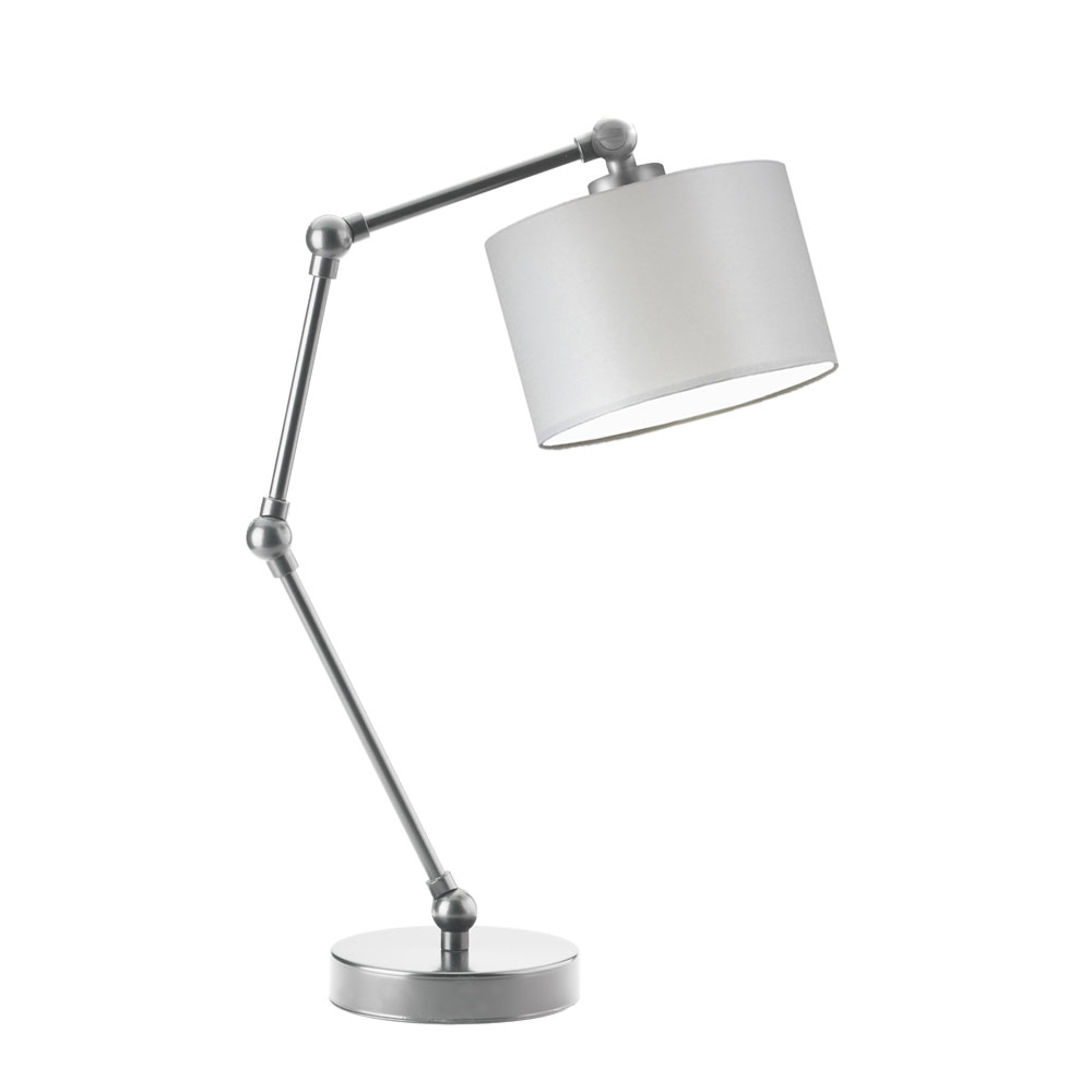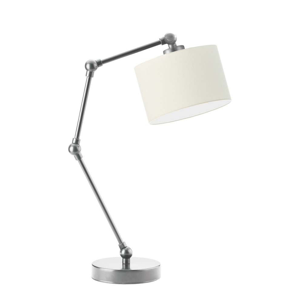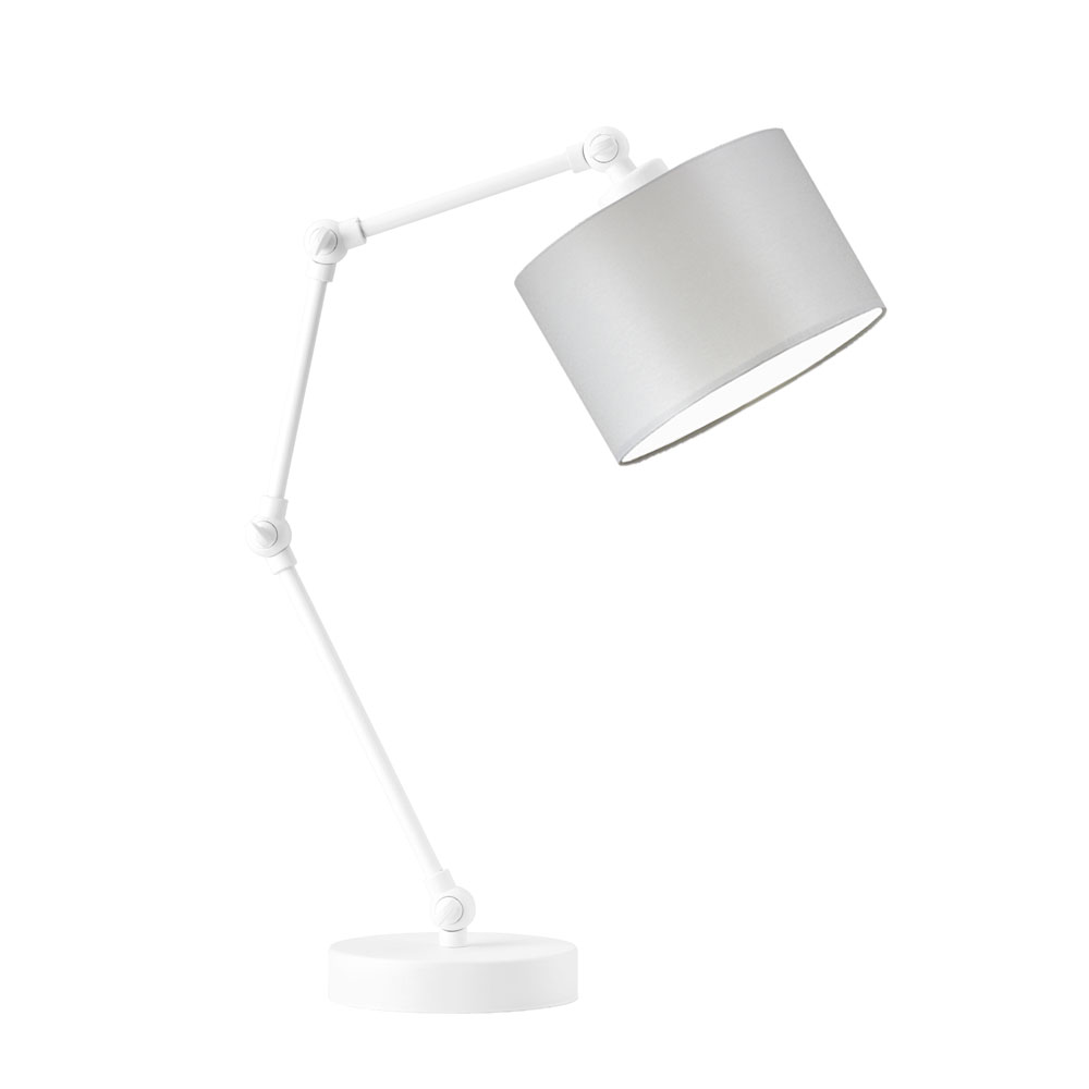 Lampka na biurko ASMARA urzeka nowoczesnym minimalizmem. Poza funkcjonalnym stelażem z możliwością regulacji, wyraźnym elementem projektu jest stylowy abażur w kształcie walca. Mimo że niewielki (ma szerokość 17,5 cm), daje wyraźne światło. Stelaż dostępny jest w trzech kolorach — białym, czarnym i srebrnym. Zarówno wysokość, jak i szerokość lampy stołowej ASMARA można regulować w zależności od potrzeb. Konstrukcję lampy wyposażyliśmy w aż 4 przeguby, dzięki którym każde z regulowanych ramion możne zmieniać swoje położenie w płaszczyźnie góra – dół. Wymiary ASMARY są zmienne, w zależności od ułożenia ramion – w klasycznej pozycji wynoszą one około 50 cm wysokości oraz około 20 cm szerokości. Stabilność oprawy zapewnia dobrze dobrany środek ciężkości oraz obciążona podstawa. Holenderska tkanina tekstylna podklejona na folii PCV zapewnia nie tylko rewelacyjny wygląd abażura, ale i jego odporność na przemijający czas.