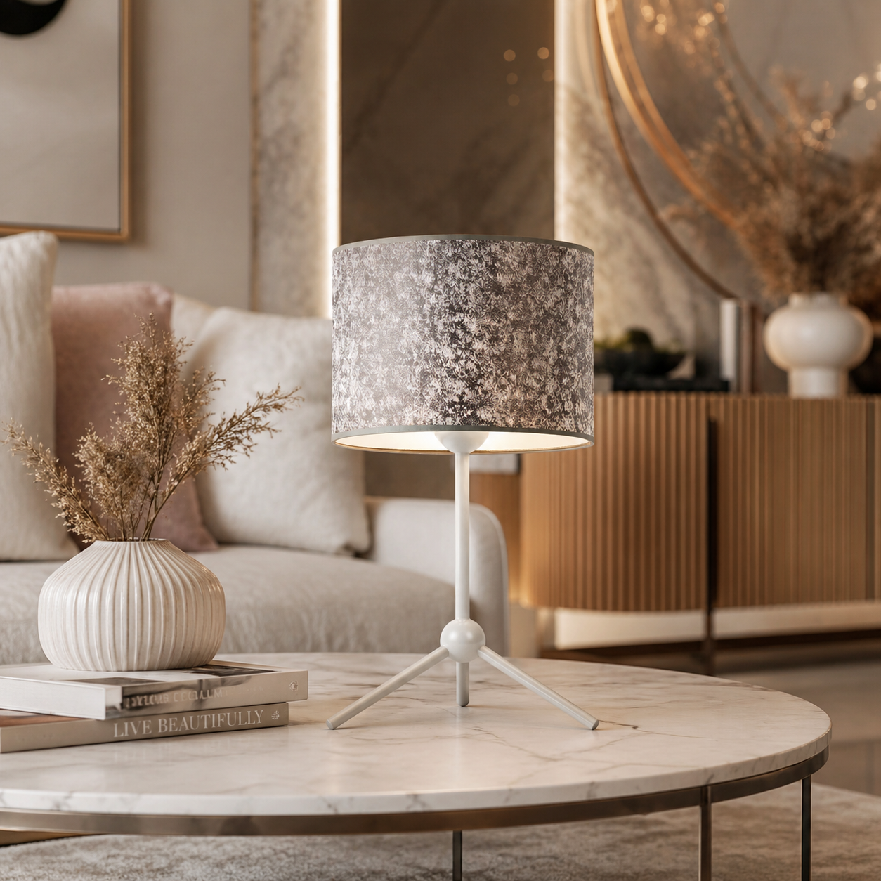 Elegancka lampa nocna ASPEN – lampa stołowa na trójnogu z abażurem | nowoczesna lampka do sypialni