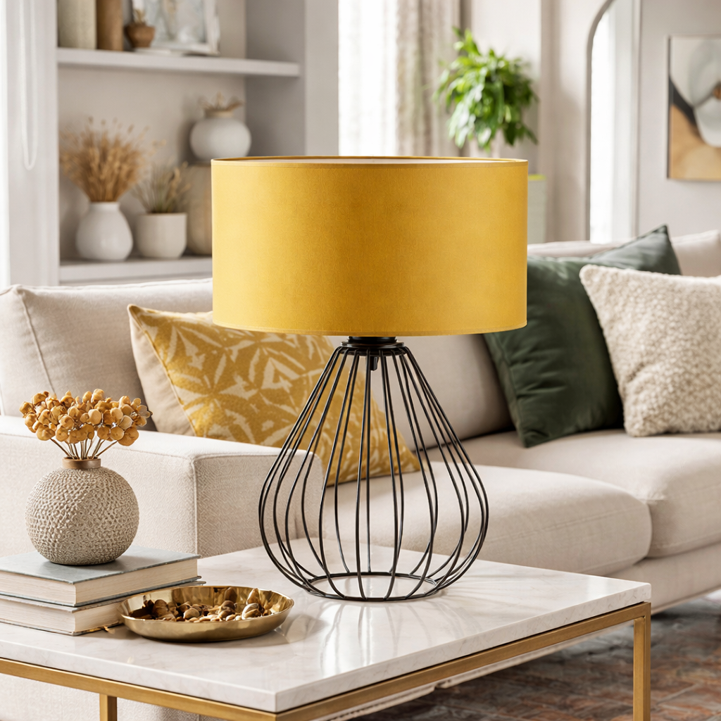 Industrialne dodatki idealnie komponują się do wnętrz urządzonych w klasyczny czy skandynawski sposób. Dzięki wprowadzeniu takich dekoracji Twoje mieszkanie nabiera unikatowego charakteru. Jednym z takich atrakcyjnych dodatków jest lampka druciana stołowa LUKKA. Jej oryginalny kształt zachwyca każdego domownika, a ciepła barwa światła wprowadza wyjątkowy klimat do pokoju czy restauracji. Niewielkie rozmiary oświetlenia stołowego LUKKA czynią ten model oprawy doskonałą do każdego mieszkania, nawet do niewielkiej kawalerki. Podstawa lampki nocnej LUKKA jest wykonana z metalu w kolorze białym lub czarnym. Kształt drucianego stelaża przypomina dużą gruszkę. Żarówka nowoczesnego oświetlenia LUKKA jest skierowana ku górze. Owalny abażur o średnicy 30 cm został wykonany z wysokiej jakość holenderskiej tkaniny tekstylnej. W ofercie znajduje się aż kilkanaście wariantów kolorystycznych kloszy. Do tego modelu lampki pasuje żarówka o gwincie E27 w klasach energetycznych od A do G lub żarówka LED.
