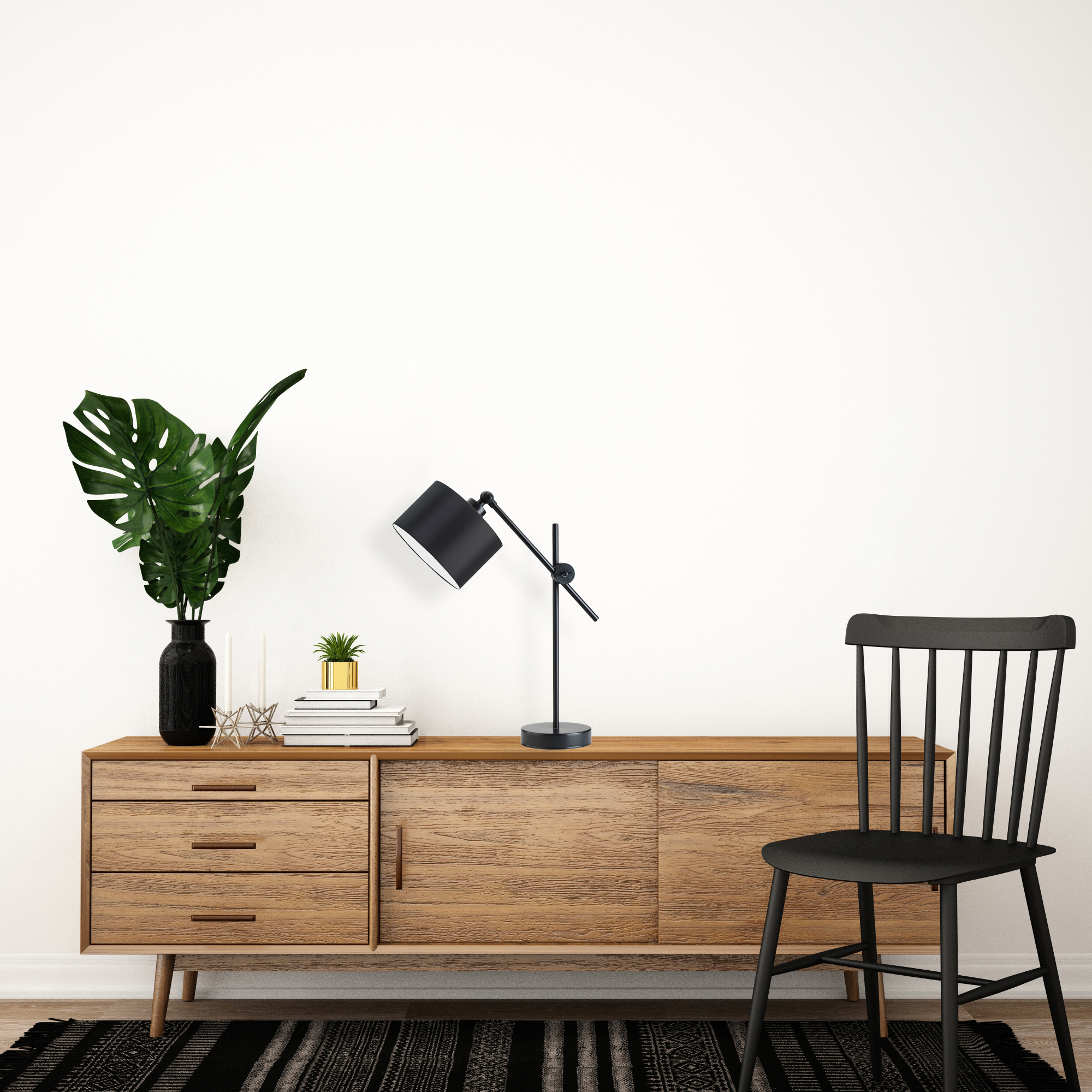 Dlaczego lampka na biurko MALI jest funkcjonalna? Moglibyśmy wymienić tu wiele argumentów, ale prawda jest taka, że rzecz leży w jej prostocie. A dokładniej w jej minimalistycznej konstrukcji, składającej się z dwóch przeciwległych ramion z możliwością regulacji. W łatwy sposób dopasujesz wysokość i szerokość lampki, a tym samym kąt padania światła. Wymiary MALI są zmienne i zależne od ustawienia. Jej wysokość w standardowej pozycji przedstawionej na zdjęciu wynosi około 50 cm, szerokość zaś około 20 cm. Nie sposób nie wspomnieć także o jej klasycznym i urokliwym kloszu w kształcie walca. Wydobywające się spod niego światło dokładnie oświetla blat biurka i pomaga podczas wykonywania precyzyjnych zadań, nauki, czytania i pracy. Design, minimalizm i funkcjonalność — te trzy słowa najlepiej opisują lampkę na biurko MALI.