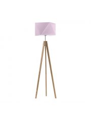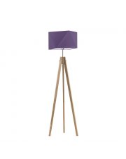 Drewniana lampa podłogowa z fioletowym abażurem ARUBA