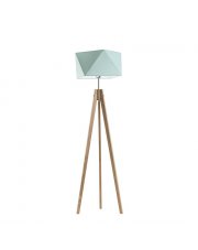 Drewniana lampa stojąca na 3 nogach ARUBA z miętowym abażurem