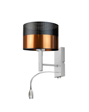 Kinkiet z podwójnym źródłem światła BOSTON VELUR i giętkim panelem LED do czytania
