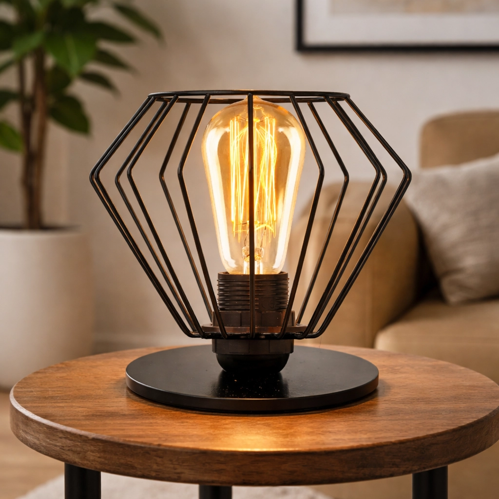 Na ścianach w Twoim mieszkaniu nie ma już miejsca na montaż kinkietu? Jednak chciałbyś wprowadzić dodatkowe źródło światła w swoich wnętrzach? W takiej sytuacji warto poznać szczegółową ofertę lamp stołowych proponowanych przez sprawdzonego producenta oświetlenia LYSNE.PL. Lampka na stolik czy komodę to ciekawa alternatywa dla lamp ściennych. Ponadto, nawet po jej usytuowaniu w danej przestrzeni możemy w łatwy sposób zmienić jej miejsce przeznaczenia. Nie potrzebujemy do tego żadnych narzędzi, ani pomocy fachowca. Oryginalny kształt stylowej lampki czynią z niej wyjątkowy dodatek do każdego mieszkania - minimalistyczny i elegancki. Druciana lampka w stylu loft NOGOYA ma okrągłą, metalową podstawę, w której zamontowana jest żarówka, skierowana ku górze. Metalowy klosz w oprawie jest połączony z podstawą oświetlenia, zatem nie mamy tutaj klasycznego stelaża lampy. Na uwagę zasługuje także designerski kształt abażura w formie diamentu zgodny z popularnym, skandynawskim trendem. Stylowa lampka z drutów jest niewielkich rozmiarów - ma zaledwie 15 cm wysokości i 17 cm szerokości.