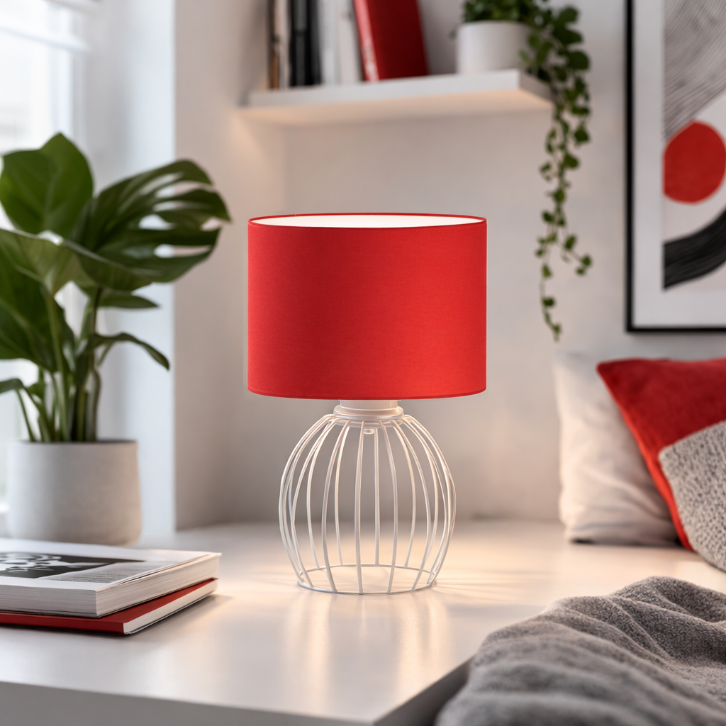 Mała lampka stołowa do salonu NASHVILLE czerwona lampka nocna druciana na stolik nocny