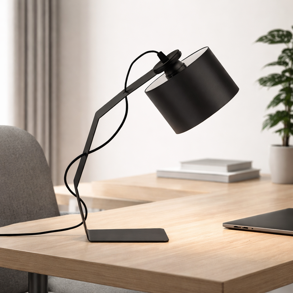 Metalowa lampa biurkowa w stylu skandynawskim HAGA elegancka lampka biurkowa z abażurem