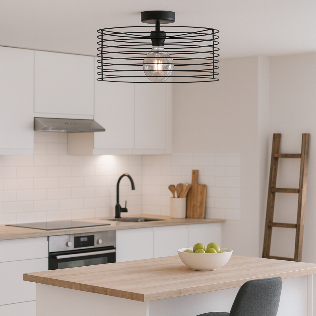 ANORI to elegancki plafon industrialny, który wyróżnia się na tle innych propozycji nie tylko oryginalną stylistyką, ale także jakością wykonania. Duży, druciany, cylindryczny klosz tworzy niepowtarzalną grę świateł, dzięki czemu pomieszczenie staje się klimatyczne i przytulne. Ten metalowy plafon zda egzamin w każdym pomieszczeniu - od dużego salonu, po kuchnię połączoną z jadalnią, aż do niewielkiej sypialni. Konstrukcja klosza sprawia, że lampa jest łatwa w utrzymaniu czystości - wystarczy przetrzeć lekko wilgotną ściereczką metalowe elementy, by pozbyć się kurzu i brudu.
