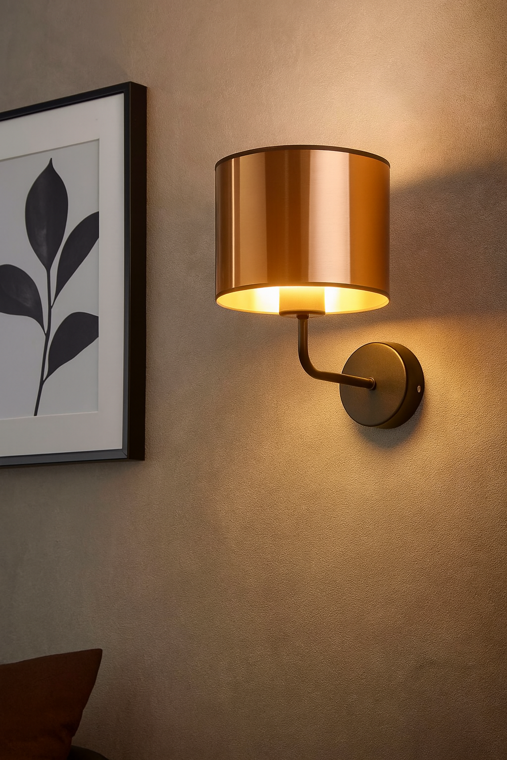 Czarno-miedziana lampa ścienna MODENA MIRROR to wyjątkowe połączenie piękna i praktyczności, które znajdzie swoje miejsce w każdym wnętrzu. Jego prosty a zarazem elegancki design sprawia, że doskonale wpisuje się w nowoczesne trendy aranżacyjne. Metalowy stelaż gwarantuje trwałość, natomiast abażur wykonany z wysokiej jakości PVC wprowadza subtelną grę światła i cienia, podkreślając wyjątkowy charakter pomieszczenia. Dostępne opcje kolorystyczne abażuru pozwalają na dopasowanie lampy do różnych stylów wnętrz. Miedziany abażur doskonale wkomponuje się w przestrzenie w stylu glamour, dodając im blasku i elegancji. Z kolei miedziano-czarna wersja to idealny wybór dla wnętrz industrialnych, gdzie podkreśli ich surowość i nowoczesny charakter. Bez względu na wybór, MODENA MIRROR stanie się nie tylko źródłem światła ale i wyjątkową ozdobą wnętrza. Kompaktowe wymiary lampy – wysokość 25 cm – czynią ją idealnym wyborem do każdego zakątka domu.