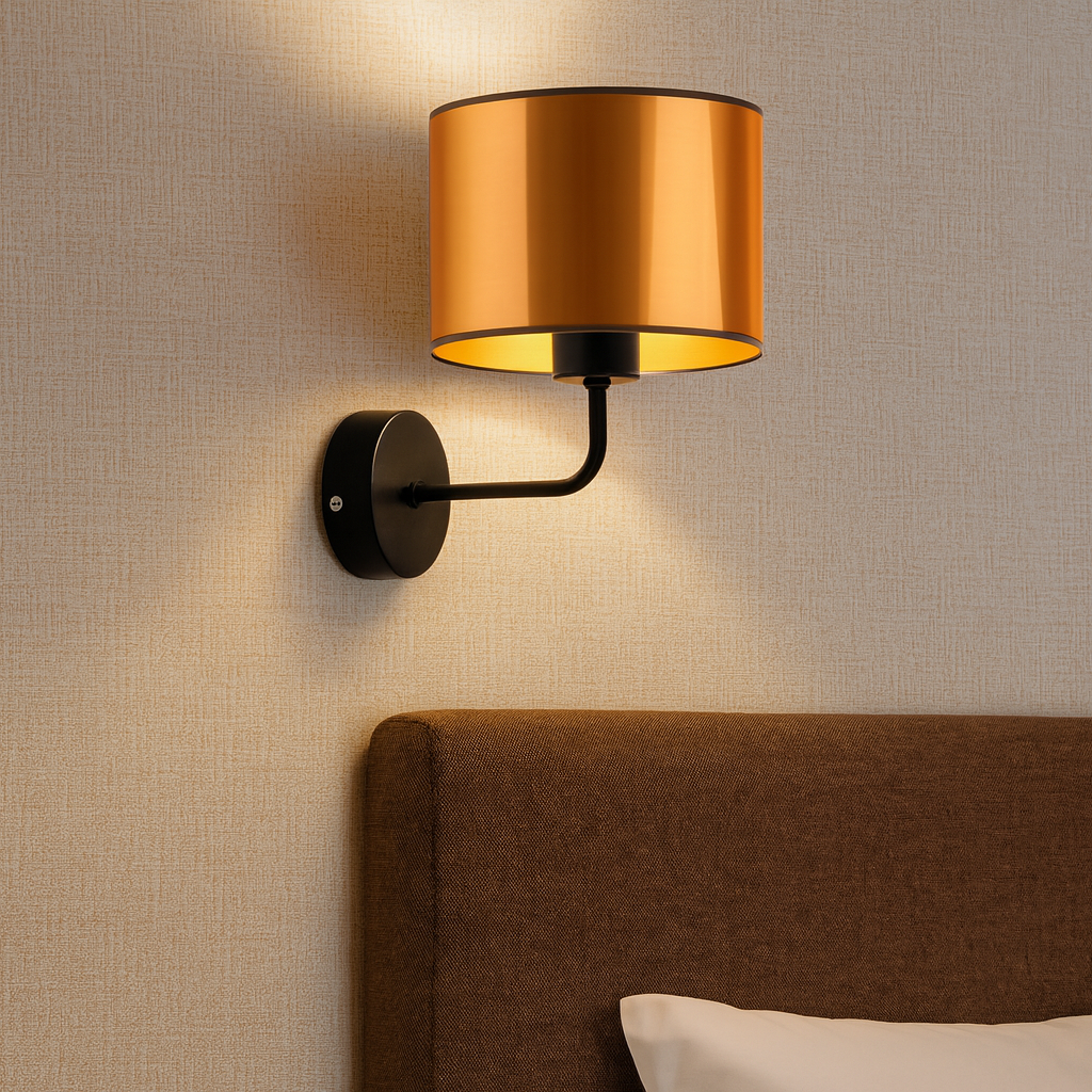 Nowoczesny kinkiet ścienny MODENA MIRROR to doskonałe połączenie elegancji i prostoty, które wnosi naturalne piękno do każdego wnętrza. Jego minimalistyczna forma oraz starannie dobrane materiały sprawiają, że jest idealnym rozwiązaniem zarówno dla nowoczesnych, jak i przytulnych przestrzeni. Wytrzymały metalowy stelaż w klasycznej czerni nadaje oprawie nowoczesnego charakteru, który doskonale współgra z abażurem. Wykonany z PVC o subtelnej strukturze abażur dostępny jest w dwóch eleganckich kolorach: złotym oraz miedzianym. Dzięki tym wariantom, czarny kinkiet MODENA MIRROR świetnie wpasowuje się w aktualne trendy wnętrzarskie nadając pomieszczeniom wyjątkowego klimatu i ciepła. Dzięki kompatybilności z żarówkami LED i tradycyjnymi (gwint E27, moc do 60W), lampa zapewnia odpowiednią jasność, jednocześnie pozostając energooszczędnym rozwiązaniem. MODENA to idealny kinkiet dla osób ceniących sobie harmonię, nowoczesny design i subtelne detale. Niezależnie od tego, czy wybierzesz złoty abażur do wnętrz w stylu glamour, czy miedziany, który podkreśli industrialny charakter przestrzeni, ten kinkiet stanie się stylowym i funkcjonalnym dodatkiem do Twojego domu.