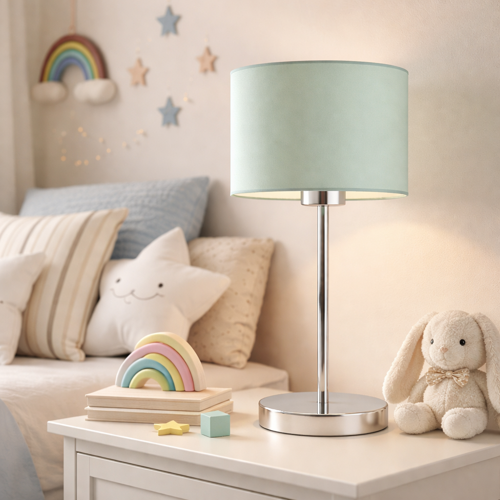 Miętowa lampka nocna dla dzieci NICEA na chromowanej podstawie