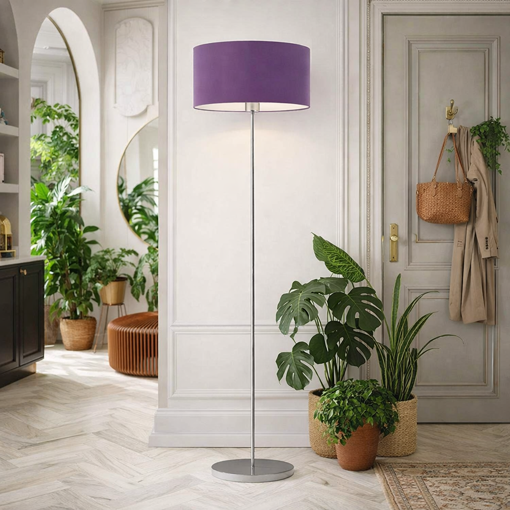 Minimalistyczna lampa podłogowa z fioletowym abażurem WERONA jest wspaniałą propozycją dla wielbicieli klasycznego designu. Jej klasyczna forma sprawia, że świetnie uzupełnia nowoczesne lub minimalistyczne wnętrze. Idealnie sprawdzi się także w kąciku przeznaczonym do czytania lub po prostu jako element typowo dekoracyjny. Abażurowa lampa podłogowa jest wyposażona we włącznik nożny, która znakomicie ułatwia codzienne funkcjonowanie. Włącznik umiejscowiony jest przy przewodzie zasilającym. Stelaż lampy stojącej wykonany jest z metalu, natomiast abażur to najwyższej jakości holenderska tkanina tekstylna podklejona folią PVC.