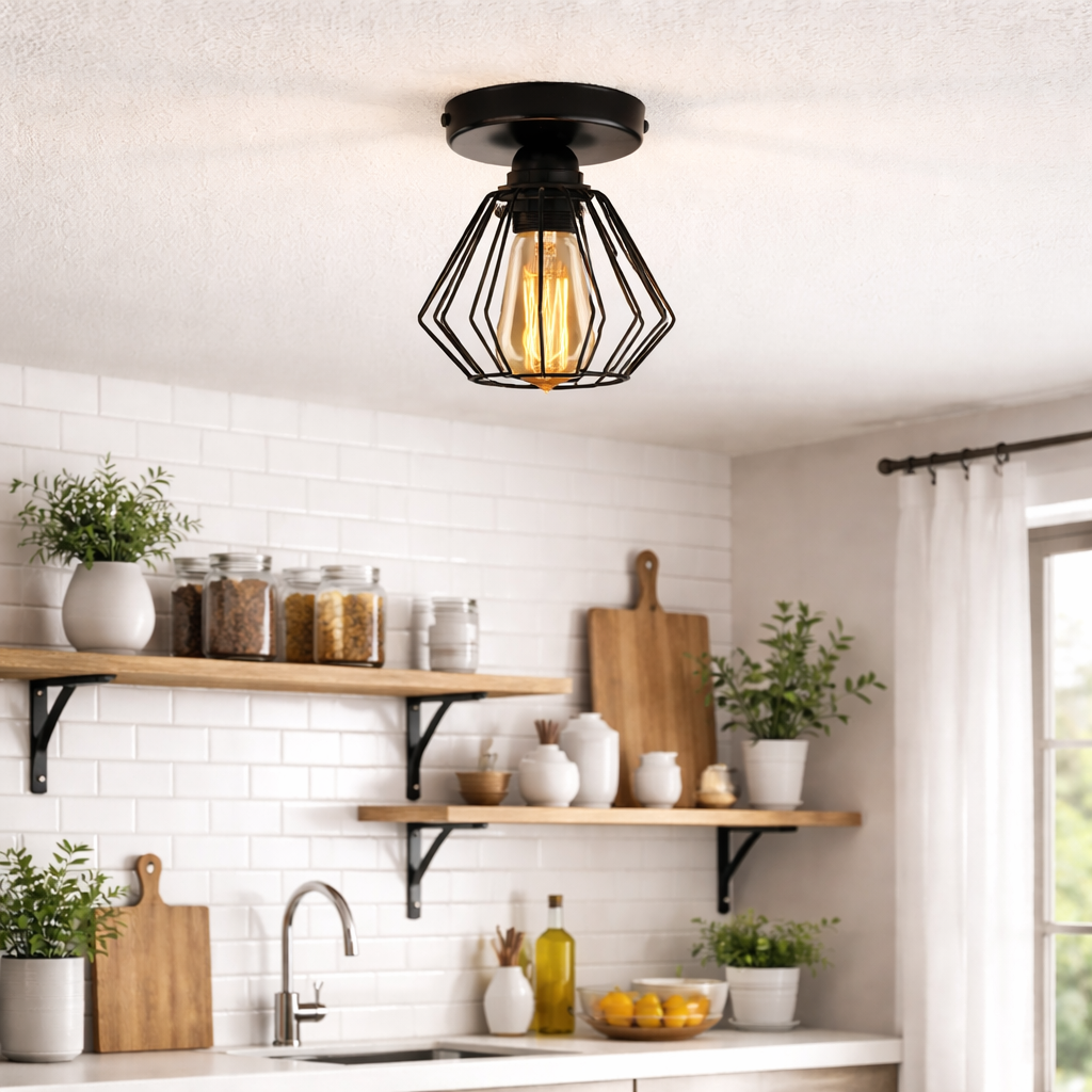 Industrialny plafon MARANA LOFT to świetna propozycja do niewielkich przestrzeni mieszkalnych czy komercyjnych. Idealnie wygląda pojedynczo lub w zestawieniu kilku sztuk tworząc zapierającą dech w piersiach iluminację świetlną. Minimalistyczny plafon o wysokości 19 cm i szerokości 16,5 cm to idealna alternatywa do mieszkań z obniżonym sufitem. Czarna lub biała metalowa podsufitka oraz druciany klosz dostępny w 3 wariantach kolorystycznych tworzą oświetlenie niezwykle uniwersalne przez co plafoniera MARANA LOFT pasuje do wielu pomieszczeń i stylów wnętrzarskich. Loftowa lampa sufitowa przyciąga wzrok nie tylko swoim nowoczesnym kształtem ale także funkcjonalnością.
