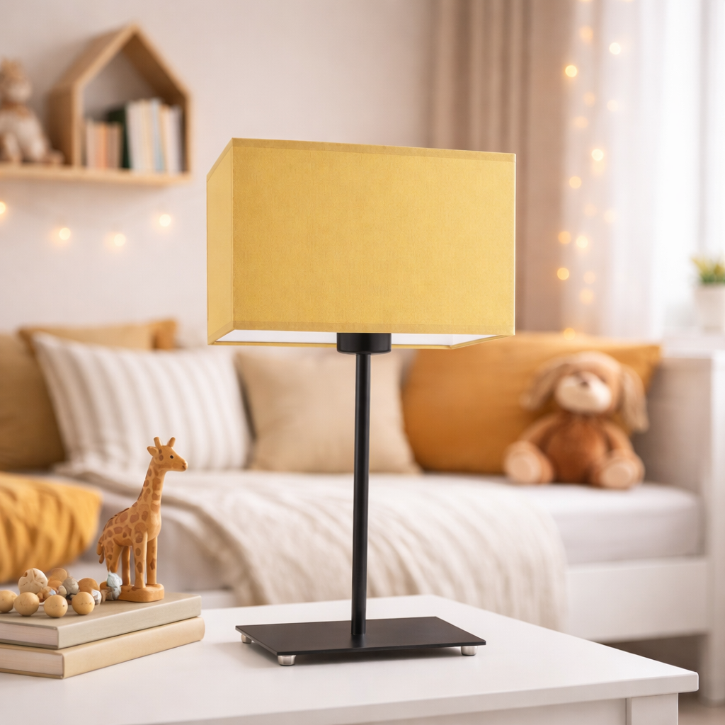 Minimalistyczna lampka stołowa z abażurem AMALFI to połączenie elegancji i funkcjonalności, idealna do sypialni, salonu lub pokoju dziecka. Wyposażona w geometryczny abażur wykonany z wysokiej jakości holenderskiej tkaniny tekstylnej podklejonej folią PVC, co gwarantuje trwałość i łatwość w utrzymaniu czystości. Abażur ma wymiary: wysokość – 15 cm, szerokość – 20 cm, głębokość – 10 cm. Całkowita wysokość oprawy wynosi 40 cm, a szerokość 20 cm, dzięki czemu jest doskonała zarówno na stolik nocny, jak i na komodę. AMALFI dostępna jest w aż 18 kolorach abażurów, co pozwala dopasować ją do każdego wnętrza. Stelaż lampki nocnej wykonany jest z trwałych metalowych elementów, a standardowe kolory to biały, srebrny i czarny. Dla miłośników bardziej wyrafinowanych wykończeń dostępne są wersje premium: chrom, stal szczotkowana oraz stare złoto (za dodatkową opłatą). Mała lampka nocna do sypialni AMALFI to doskonały wybór dla tych, którzy cenią sobie design, jakość i możliwość personalizacji.