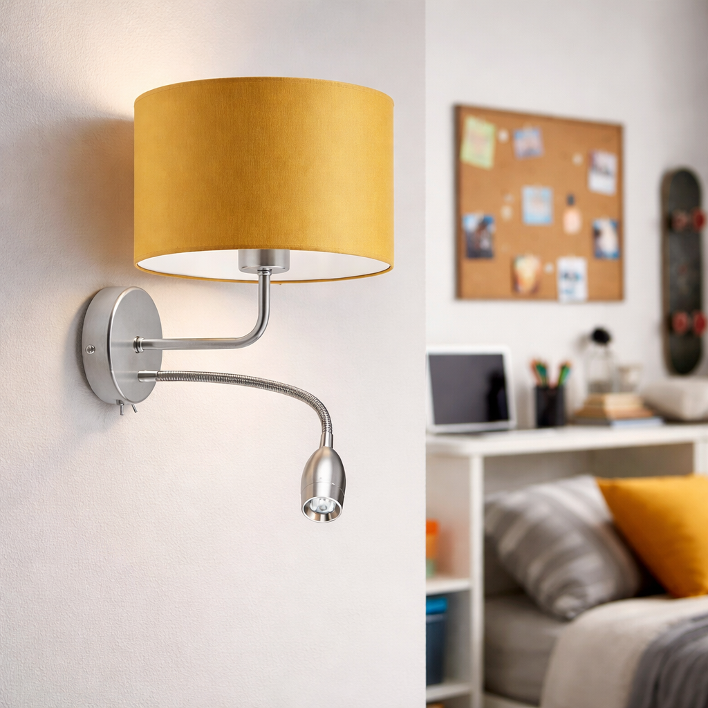 Designerska lampa naścienna CAPRI to oświetlenie łączące elegancki styl z funkcjonalnymi udogodnieniami. Niezależnie, czy poszukujesz kinkietu do sypialni, lampy do biura, kinkietu łazienkowego czy kinkietu do hotelu wszędzie będzie się idealnie prezentować. Oprócz efektownego wyglądu zachwyca ciepłą barwą światła z żarówki i panelu LED. Dodatkowa funkcja wprowadzająca punktowe światło czyni z tego kinkietu idealną lampę do czytania w łóżku. Ruchomy reflektor umiejscowiony w giętkim panelu led zasilany jest przez moc 5W. Natomiast główne źródło światła przystosowane jest do źródeł światła o klasach energetycznych od A do G - tradycyjnych żarówek o mocy 60W lub żarówek LED mocowanych na tzw. duży gwint E27. Zamontowanie kinkietu w pokoju dziecięcym ułatwi oświetlenie nawet trudno dostępnych zakamarków. Metalowy kinkiet z włącznikiem to synonim funkcjonalności połączonej z dziecięcym designem. Kinkiet perfekcyjnie zgrywa się z umieszczonymi w pomieszczeniu dziecięcymi mebelkami, łóżeczkiem i zabawkami malucha. Oświetlenie to wprowadzi do pokoju miłą atmosferę, sprzyjającą relaksowi oraz dziecięcym zabawom.