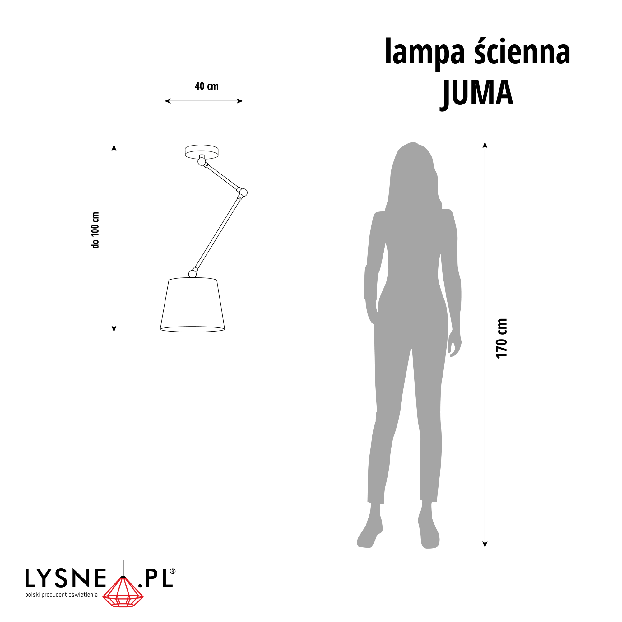 Szukając idealnej lampy wiszącej do pokoju lub kuchni warto rozważyć zakup żyrandola z regulowanym ramieniem. Taka opcja jest niezwykle przydatna, kiedy chcemy oświetlić wybraną część pomieszczenia. Lampa wisząca z regulacją kąta padania światła JUMA zachwyca swoim designem i funkcjonalnością. Regulowane ramię konstrukcji pozwala na osiągnięcie maksymalnej wysokości 100 cm. Oprócz ustawienia pionowego możemy zmieniać kąt szerokości. Stelaż plafonu sufitowego dostępny jest w 3 kolorach, a abażur oferowany jest w kilkunastu odcieniach. Kształt klosza przypomina ścięty stożek, który w najszerszym miejscu ma 37 cm. Przy zakupie określamy, czy dokupujemy denko. Jest to element maskujący dolną część lampy oraz rozpraszający światło na całą powierzchnię lampy. Polski producent oświetlenia LYSNE.PL objął ten model 24-miesięczną gwarancją. Do tej lampy regulowanej pasuje żarówka E27 o klasach energetycznych od A do G oraz żarówka LED mocowana na gwint E27.