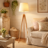 Lampa podłogowa na trójnogu – poznajcie jej wysokość drewnianą lampę stojącą ARUBA