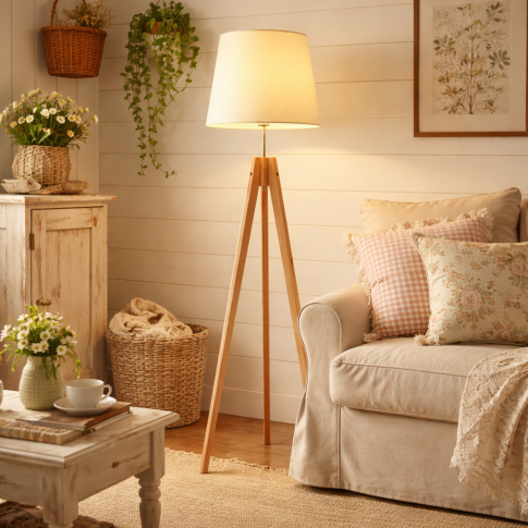 Lampa stojąca na drewnianych nogach – mnogość wyboru kolorystyki