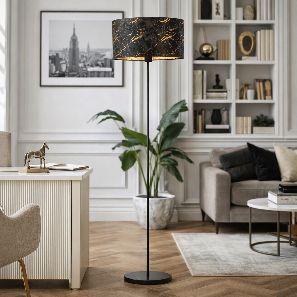 Odpowiedź na to pytanie będzie zależeć od tego, czego wymagamy od lamp podłogowych w salonie? Dla wielbicieli nowoczesnych rozwiązań ważny będzie design i nowatorskie materiały, natomiast dla zwolenników funkcjonalności – praktyczność oraz wygoda użytkowania. Bez względu na to do której grupy należysz lampa stojąca MORONI MARMUR spełni wszystkie Twoje wymagania. Dodatkowo ten model oświetlenia podłogowego występuje w kilku wariantach kolorystycznych stelaża (biały, srebrny, czarny oraz chrom, stal szczotkowana a także stare złoto) oraz abażuru. Klosz o średnicy 40 cm i wysokości 20 cm dostępny jest 2 kolorach: białym oraz czarnym marmurze ze złotą nicią. Dzięki tkaninowemu abażurowi, który rozprasza światło niczym dyfuzor i emituje je równomiernie do otoczenia, minimalistyczna lampa stojąca tworzy przytulną atmosferę we wnętrzu. Dodatkowo złote akcenty umieszczone na abażurze dodają wnętrzu głębi i luksusowego charakteru. Lampy stojące z abażurami imitującymi nieregularną strukturę marmuru świetnie sprawdzą się także we wnętrzach komercyjnych – hotelach, pensjonatach czy restauracjach.