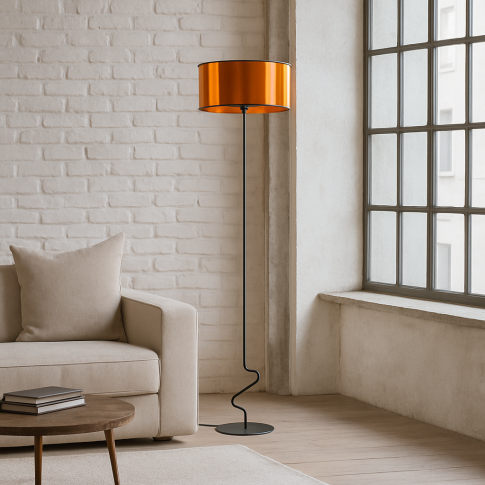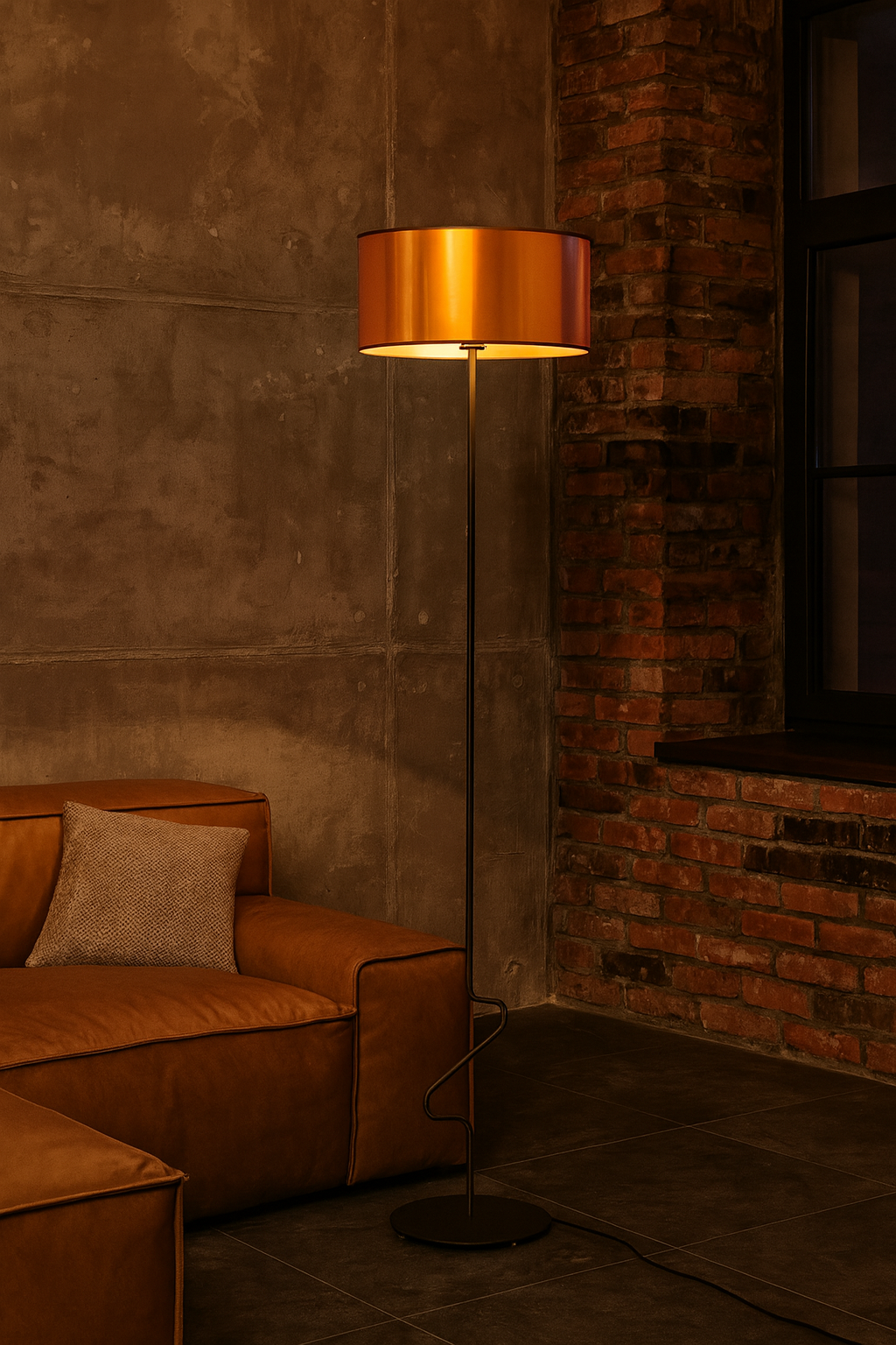 Dzięki swojej minimalistycznej formie lampa podłogowa z cylindrycznym abażurem TESALLIA MIRROR świetnie sprawdzi się zarówno w przestronnym salonie jak i w mniejszej sypialni czy eleganckim biurze. Jej minimalistyczna acz wyrazista czarna konstrukcja doskonale komponuje się z wnętrzami urządzonymi w stylu loft oraz industrialnym, które charakteryzują się surowością i prostotą, a jednocześnie mocnymi akcentami. W przestrzeniach loftowych, gdzie dominują otwarte, wysokie pomieszczenia z widocznymi elementami konstrukcyjnymi, takimi jak stalowe belki, surowe ceglane ściany czy betonowe podłogi, lampa podłogowa w klasycznej czerni stanowi idealny element oświetlenia. W mniejszych przestrzeniach takich jak sypialnie czy biura, TESALLIA MIRROR oferuje subtelne, ale efektowne oświetlenie w stylu loft, które nie przytłacza wnętrza, ale delikatnie je dopełnia. Czarna lampa stojąca z miedzianym kloszem tworzy wyjątkowy klimat, który jest jednocześnie przytulny i pełen charakteru. W połączeniu z meblami z surowego drewna, metalowymi regałami czy skórzanymi akcentami, TESALLIA MIRROR staje się centralnym punktem, który przyciąga wzrok i nadaje pomieszczeniu wyjątkowego stylu. Niezależnie od tego, gdzie ją umieścisz, industrialna lampa podłogowa w kolorze czarnym wprowadzi do Twojego wnętrza niepowtarzalny klimat, łącząc surowość stylu loft i industrialnego z subtelną elegancją, co czyni ją idealnym wyborem dla miłośników nowoczesnych i wyrazistych aranżacji.