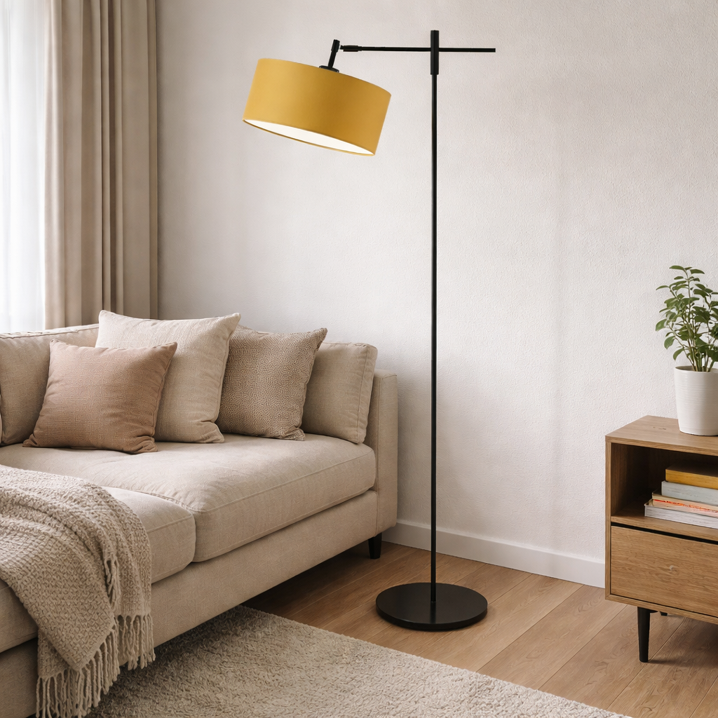Nowoczesna lampa podłogowa z musztardowym abażurem MELTON - czy lampa stojąca daje dużo światła?