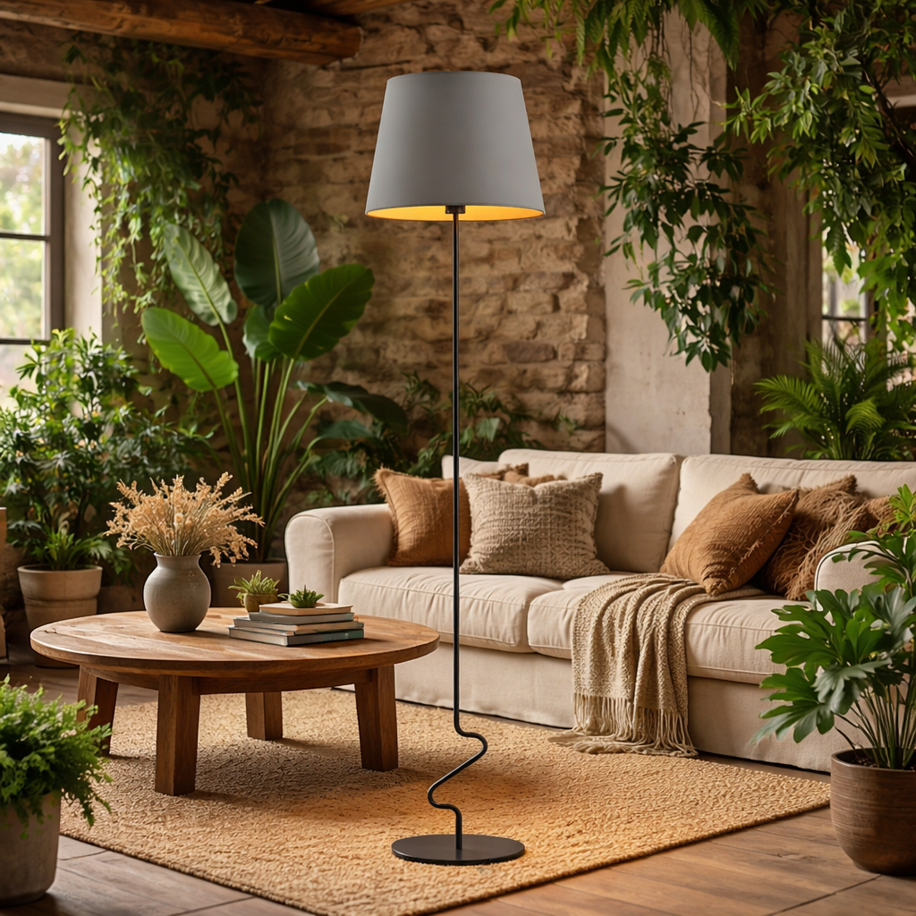 Lampa ma wysokość 174 cm, co sprawia, że jest zauważalnym i wyrazistym dodatkiem do przestrzeni. Jest to idealne rozwiązanie do wielu wnętrz. SURAT GOLD doskonale sprawdzi się zarówno w salonie, jak i jako lampa podłogowa do sypialni a także jako stylowa lampa stojąca do biura. W każdej z tych przestrzeni jej obecność podkreśli wyrafinowany styl wnętrza, tworząc przytulną atmosferę. Lampa ta doskonale odnajdzie się w różnych stylach wnętrzarskich w tym w eleganckim stylu glamour, gdzie złote wnętrze abażura idealnie współgra z luksusowymi akcentami. Jej nowoczesny, minimalistyczny design sprawia, że świetnie pasuje również do wnętrz w stylu eklektycznym, dodając im nieco współczesnego charakteru. Dzięki swojej prostocie i subtelnej dekoracyjności, lampa stojąca z szarym abażurem będzie również doskonałym wyborem do nowoczesnych aranżacji, gdzie liczy się harmonia i funkcjonalność.