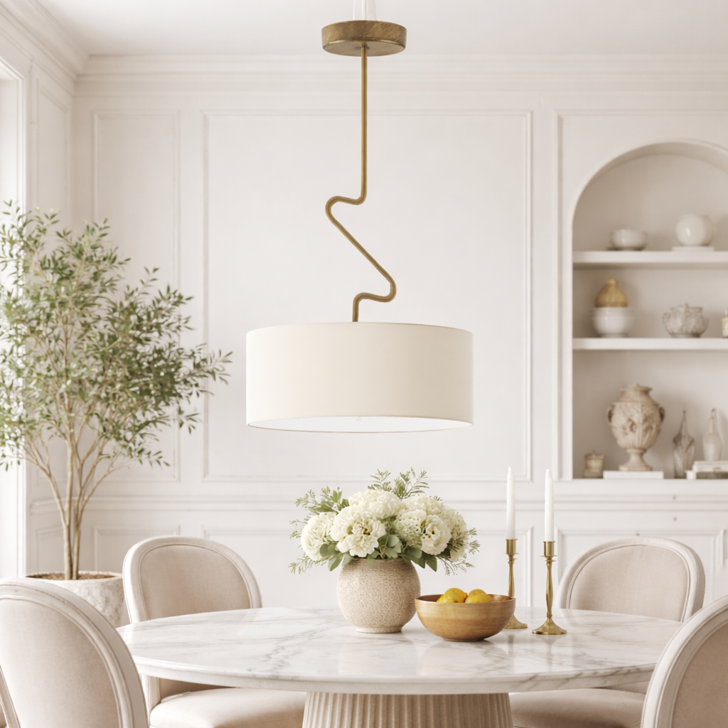 Styloway żyrandol z abażurem w kolorze ecru LOZANNA to nowa propozycja oświetlenia przygotowana przez polskiego producenta lamp LYSNE.PL. W tym modelu projektanci zadbali o wyjątkowe połączenie atrakcyjnego designu z funkcjonalnym wykończeniem. Dzięki takiemu zestawieniu lampa pasuje zarówno do kuchni, jak i do salonu, jadalni czy przedpokoju. Stylowa lampa wisząca ma tkaninowy abażur w kształcie walca o średnicy 40 cm i wysokości 20 cm. Szeroki wybór wariantów kolorystycznych abażurów zadowoli każdego, nawet najbardziej wymagającego designera wnętrz. Ponadto, mamy aż 6 barw stelaża do wyboru. Klasyczny kształt abażuru przełamuje efektowny stelaż, który jest wygięty w kształcie fali w dolnej części. Metalowa konstrukcja żyrandola do kuchni jest stabilna i zapewnia bezpieczne korzystanie z tego oświetlenia przez wiele lat. Producent LYSNE.PL objął ten produkt 2-letnią ochroną gwarancyjną. Kremowa lampa sufitowa LOZANNA ma 95 cm wysokości i 40 cm szerokości. Jest przystosowana do źródeł światła (typ gwintu E27) o klasach energetycznych od A do G oraz żarówek LED.