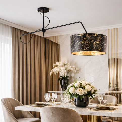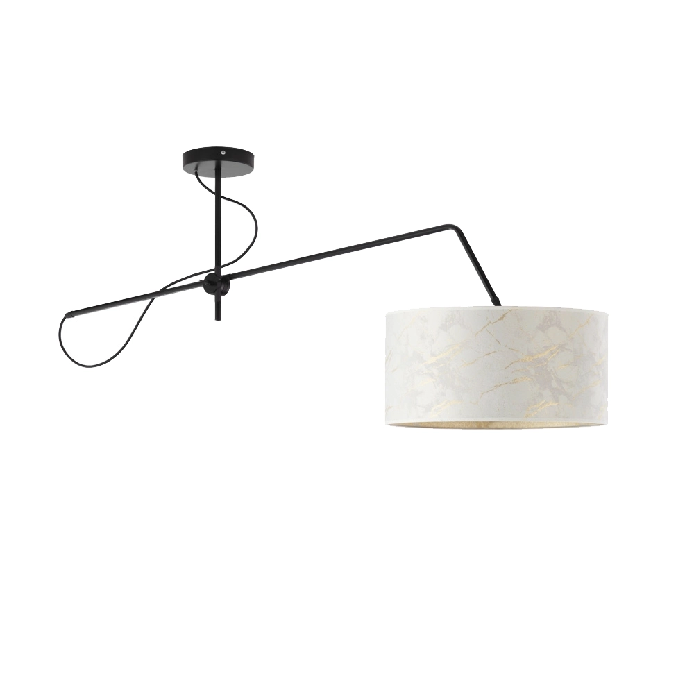 RIO MARMUR to wyjątkowe oświetlenie, które dzięki swojemu oryginalnemu designowi i funkcjonalnemu zastosowaniu odmieni każde wnętrze. Ta niepowtarzalna lampa wisząca z regulowanym ramieniem świetnie sprawdzi się w roli głównego oświetlenia w niewielkim salonie czy sypialni. Z powodzeniem może pełnić funkcję lampy doświetlającej a nawet lampy do sypialni nad łóżko, która zastąpi dodatkową lampę stojącą czy lampki nocne. Ramię RIO mocowane jest na wysięgniku umożliwiającym regulację wysokości tkaninowego abażura imitującego luksusowy marmur. Cała kompozycja prezentuje się niezwykle gustownie i elegancko. Nowoczesny żyrandol RIO szczególnie docenią fani wnętrz wykończonych w stylu eklektycznym, czyli w takim, który łączy cechy kilku stylów wnętrzarskich i tym samym daje nieograniczone możliwości w urządzaniu pomieszczeń.