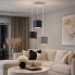 Lampa wisząca z 3 abażurami PUEBLO dostępna jest w 5 wariantach kolorystycznych abażurów ze złotym środkiem: biały, szary stalowy, zieleń butelkowa, granatowy oraz czarny — wszystkie z eleganckim złotym wykończeniem wnętrza. Do tego 6 kolorów stelaża: biały, czarny, srebrny (standard), chrom, stal szczotkowana oraz stare złoto. Dzięki temu żyrandol 3 punktowy z regulacją wysokości dopasujesz do wnętrz nowoczesnych, loftowych, glamour czy minimalistycznych.