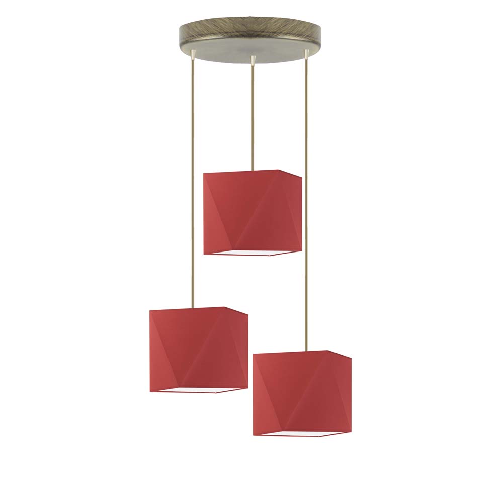 MAJORKA to nowoczesny żyrandol od polskiego producenta lamp z abażurami — LYSNE.PL. Oprawa z kolekcji CLASSIC stanowi ciekawą alternatywę dla klasycznych lamp wiszących. MAJORKA wyróżnia się trzema diamentowymi abażurami o przekątnej 22,5 cm. Każdy z nich został umieszczony w innej odległości od metalowej rozety w sześciu odcieniach do wyboru — białym, srebrnym, czarnym, chromowanym, stalowym i starego złota. Geometryczne klosze lampy pokrywa holenderska tkanina tekstylna, dostępna w kilkunastu kolorach (biały, ecru, jasny szary (gołębi), miętowy, musztardowy, jasny różowy, jasny fioletowy, beżowy, szary (stalowy), czerwony, niebieski, fioletowy, zieleń butelkowa, granatowy, grafitowy, brązowy, czarny oraz szary melanż (tzw. beton)). Nowoczesny żyrandol MAJORKA mierzy 40 cm szerokości i ma możliwość regulacji wysokości do 120 cm. Lampa jest wyposażona w miejsca na trzy źródła światła o mocy po 60 W i mocowaniu na tzw. duży gwint E27 w klasach energetycznych od A do G oraz żarówek LED.
