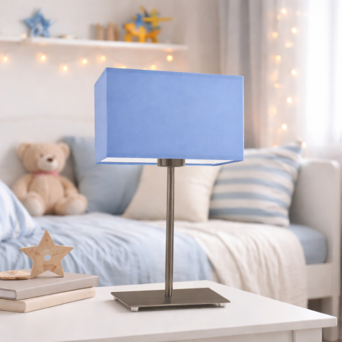 Minimalistyczna lampka stołowa z abażurem AMALFI to połączenie elegancji i funkcjonalności, idealna do sypialni, salonu lub pokoju dziecka. Wyposażona w geometryczny abażur wykonany z wysokiej jakości holenderskiej tkaniny tekstylnej podklejonej folią PVC, co gwarantuje trwałość i łatwość w utrzymaniu czystości. Abażur ma wymiary: wysokość – 15 cm, szerokość – 20 cm, głębokość – 10 cm. Całkowita wysokość oprawy wynosi 40 cm, a szerokość 20 cm, dzięki czemu jest doskonała zarówno na stolik nocny, jak i na komodę. AMALFI dostępna jest w aż 18 kolorach abażurów, co pozwala dopasować ją do każdego wnętrza. Stelaż lampki nocnej wykonany jest z trwałych metalowych elementów, a standardowe kolory to biały, srebrny i czarny. Dla miłośników bardziej wyrafinowanych wykończeń dostępne są wersje premium: chrom, stal szczotkowana oraz stare złoto (za dodatkową opłatą). Mała lampka nocna do sypialni AMALFI to doskonały wybór dla tych, którzy cenią sobie design, jakość i możliwość personalizacji.