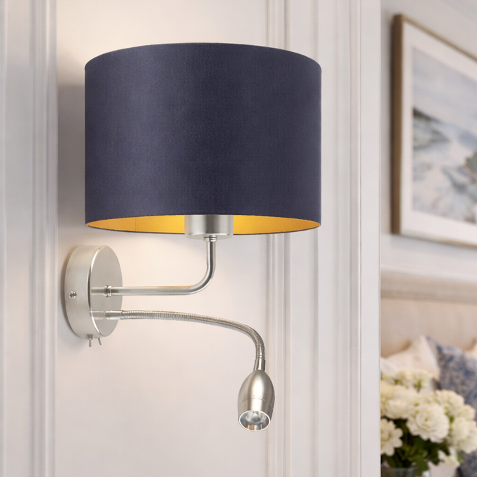 Lampa ścienna LED CAPRI GOLD to kwintesencja nowoczesnego designu i najwyższej jakości wykonania. Jej dwupunktowa konstrukcja łączy klasyczny klosz z holenderskiej tkaniny tekstylnej podklejonej folią PVC z ruchomym panelem LED, który zapewnia dodatkowe funkcjonalne oświetlenie. Abażur zachwyca swoją dwukolorową formą – wnętrze zdobione złotą folią odbija światło dodając pomieszczeniu blasku. Ten designerski kinkiet doskonale wpisuje się w aktualne trendy wnętrzarskie, oferując bogatą kolorystykę abażurów oraz elegancki stelaż w dwóch wariantach – chromowanym i szczotkowanej stali.