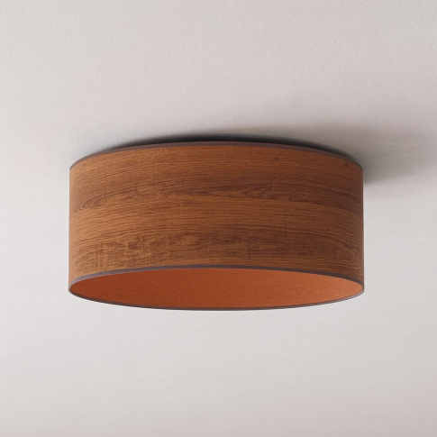 Nowoczesna lampa sufitowa DUBAJ z abażurem o średnicy 30 cm z kolekcji ECO polskiego producenta lamp LYSNE.PL to połączenie elegancji, minimalizmu i funkcjonalności. Ta wyjątkowa lampa sufitowa LED w stylu skandynawskim idealnie dopełni wystrój każdego wnętrza – od salonu przez sypialnię po kuchnię i jadalnię. Cylindryczny abażur o średnicy 30 cm i wysokości 15 cm wykonany został z materiału PVC z delikatnym tłoczeniem przypominającym naturalne drewno - à la fornir. Dzięki temu plafon DUBAJ wprowadza do pomieszczenia ciepło i przytulność charakterystyczne dla oświetlenia w stylu skandynawskim. Abażur lampy przylega do sufitu pozostawiając jedynie około 0,5–1 cm przestrzeni między nim a powierzchnią sufitu, co zapewnia efekt delikatnego „unoszenia się” oprawy i lepszą cyrkulację powietrza wokół żarówki. To doskonały wybór jeśli szukasz nowoczesnej lampy sufitowej do salonu lub lampy sufitowej w odcieniu kasztanowym w klimacie boho lub rustykalnym.