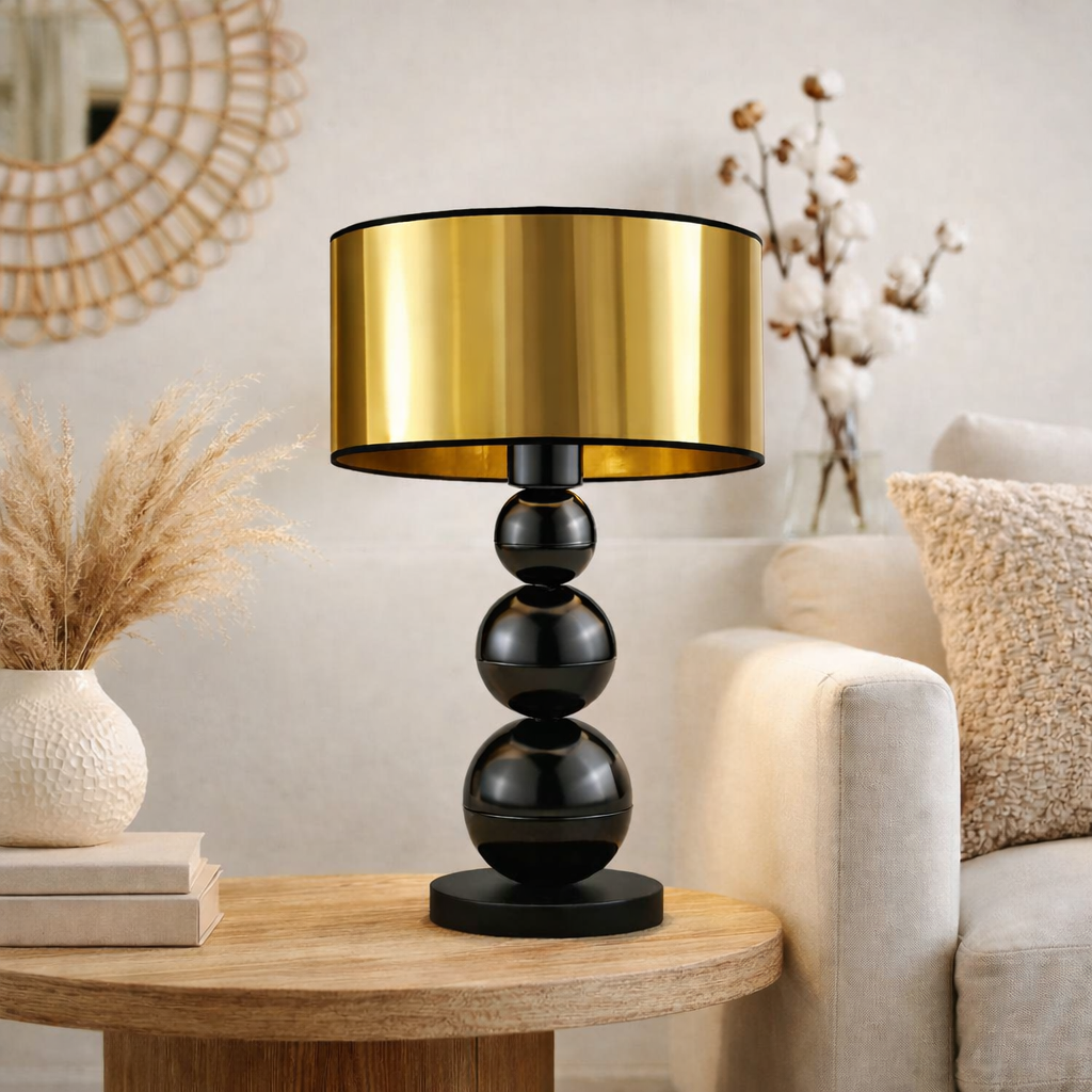 Ta czarna lampa stołowa ze złotym abażurem to kwintesencja elegancji, stylu glamour i funkcjonalności.