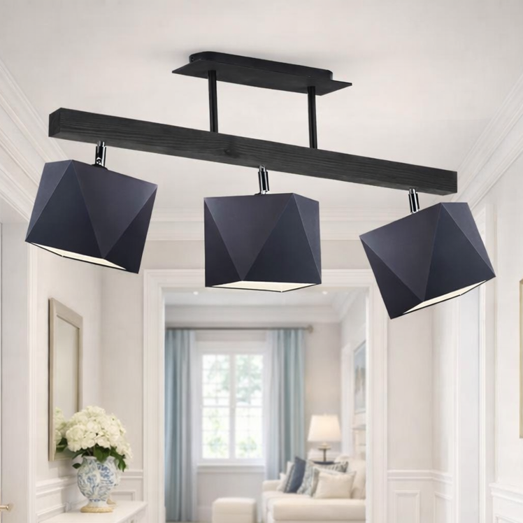 Potrójna lampa sufitowa na drewnianej belce MIRAMAR — funkcjonalność w nowoczesnym wydaniu