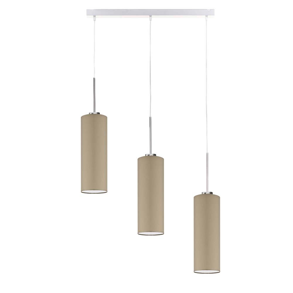 Każdy z abażurów ma 35 cm wysokości i 15 cm średnicy, a ich forma została wykonana z holenderskiej tkaniny tekstylnej podklejonej folią PVC, co zapewnia trwałość oraz subtelne rozproszenie światła. Dzięki możliwości regulacji długości przewodów, klosze można zawiesić na różnych wysokościach, co pozwala na personalizację wyglądu lampy oraz precyzyjne dostosowanie jej do wysokości sufitu. BORNEO posiada trzy gniazda na żarówki E27 o mocy po 60W i może być używana z żarówkami LED oraz źródłami światła o klasach energetycznych od A do G. Dodatkowym atutem jest podłączenie 2-obwodowe, umożliwiające zapalanie jednej, dwóch lub trzech żarówek niezależnie.