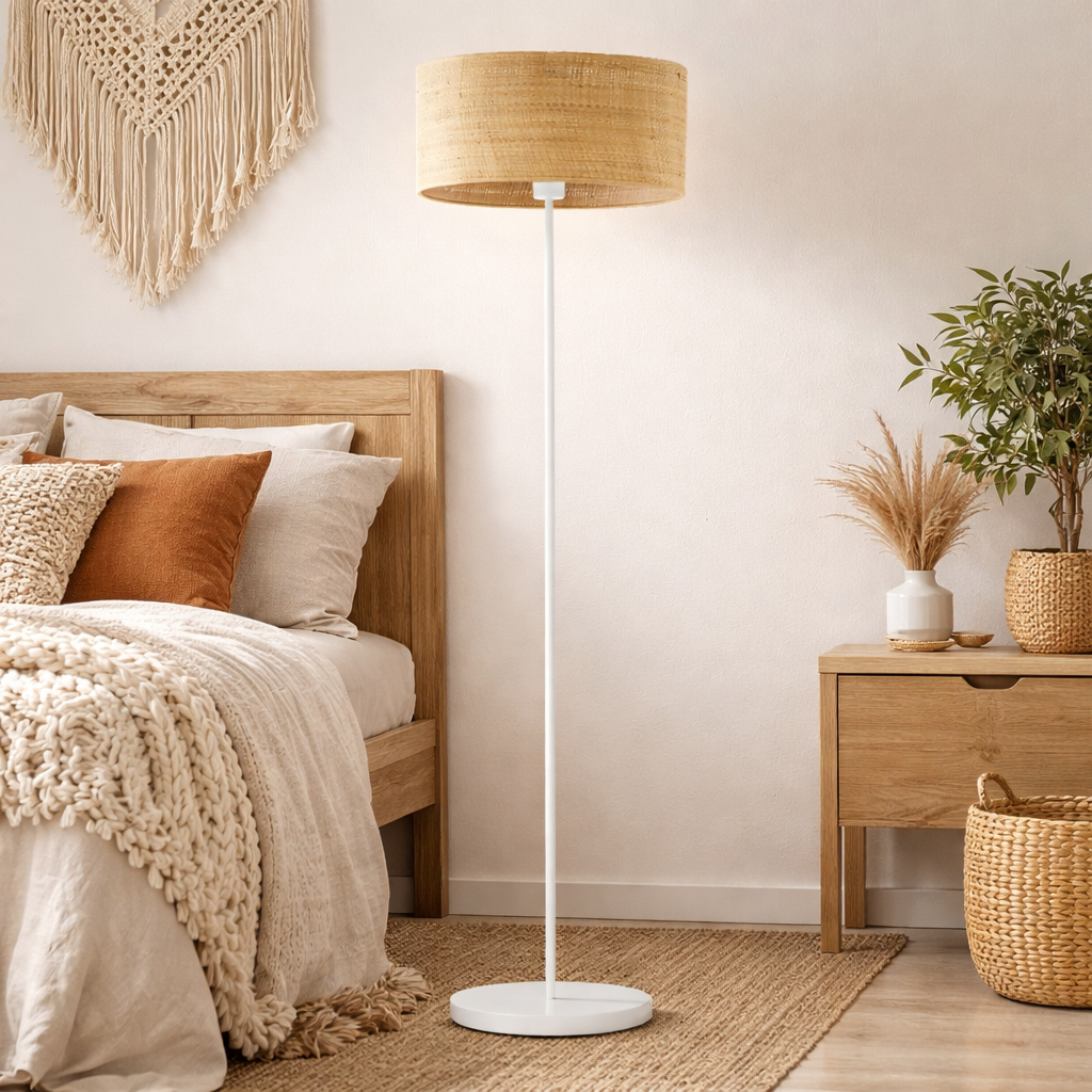 Rattanowa lampa podłogowa do sypialni WERONA BOHO to stylowe oświetlenie do salonu i sypialni, które doskonale wpisuje się w modny styl boho, japandi oraz wnętrza inspirowane naturą. Wykonana z naturalnego rattanu, zachwyca lekkością formy i subtelnym designem, który wprowadza do wnętrza ciepłą, przytulną atmosferę. Abażur o średnicy 40 cm i wysokości 20 cm delikatnie rozprasza światło, tworząc nastrojowe oświetlenie idealne do relaksu, czytania lub wieczornego odpoczynku. Dzięki swojej uniwersalnej stylistyce lampa podłogowa boho świetnie sprawdzi się zarówno w salonie, sypialni jak i w przestrzeni wypoczynkowej czy kąciku czytelniczym. Lampa stojąca z rattanu WERONA BOHO to nie tylko funkcjonalne oświetlenie podłogowe ale również wyjątkowy element dekoracyjny, który podkreśla charakter wnętrza i nadaje mu naturalnej elegancji. Idealny wybór dla osób poszukujących modnych lamp z rattanu, które łączą estetykę, jakość wykonania i ponadczasowy styl.