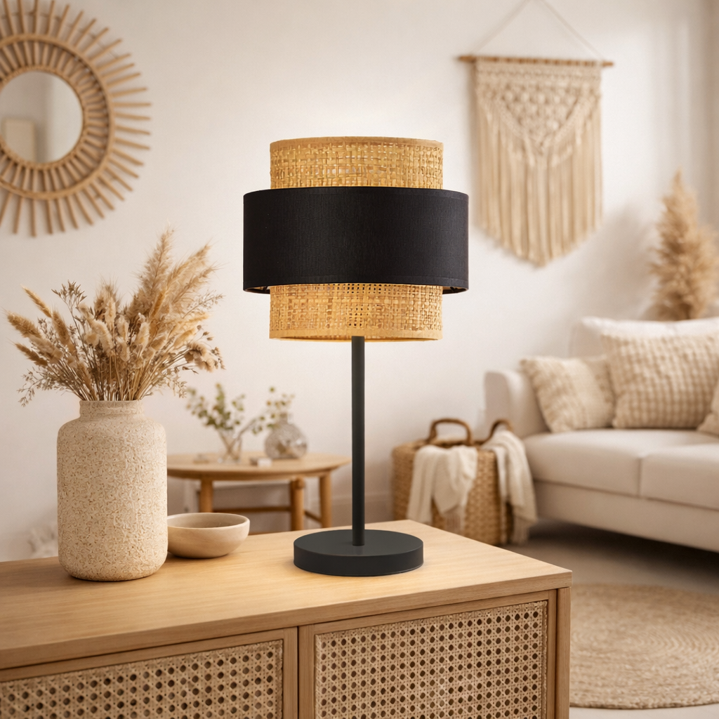 Rattanowa lampa stołowa wykonana z ekologicznych materiałów błyskawicznie tworzy naturalną i przytulną atmosferę, sprzyjającą odpoczynkowi. Prezentuje się subtelnie i dekoracyjnie, zarówno w ciągu dnia, jak i rozświetlając wnętrze po zmierzchu. Dzięki swojemu naturalnemu wyglądowi spełni nie tylko funkcje oświetlenia wnętrza, ale będzie też nietuzinkową, oryginalną dekoracją do salonu lub sypialni. Lampa stołowa z kloszem z rattanu nie tylko rozprasza delikatnie światło, ale również sprawia, że oprawa staje się elegancką dekoracją wnętrza. Urokliwy rattanowy abażur dodaje pomieszczeniu subtelnego wdzięku i finezji, czyniąc lampę nie tylko źródłem światła, ale także wyjątkowym elementem artystycznym. Dzięki uniwersalnej formie i kolorystyce lampa nocna z rattanu to doskonały wybór do wielu różnych wnętrz. Modne jest również łączenie różnych stylistyk, aby stworzyć własną unikalną aranżację, co pozwala na wyrażenie indywidualności.