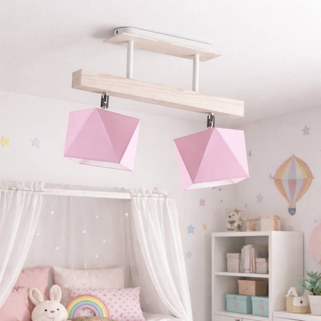 Propozycja nowoczesnego plafonu ASTIR od polskiego producenta designerskich lamp LYSNE.PL stanowi rewelacyjną alternatywę dla lampy wiszącej. Niebanalna konstrukcja tego oświetlenia umożliwia rozprowadzenie światła na całą powierzchnię pokoju, stwarzając przy tym niecodzienny klimat. Dwa małe abażury w kształcie diamentu o wysokości 16 cm i szerokości 16 cm umieszczono na przegubach umożliwiających regulacją kąta padania światła. Podsufitka lampy sufitowej została wykonana z drewna – ten materiał świetnie komponuje się z tkaniną tekstylną abażurów i wieloma stylami aranżacji wnętrz. Lampa mierzy 40 cm wysokości i 47 cm szerokości. Ma stopień ochrony IP20. Plafon z geometrycznymi abażurami ASTIR został dostosowany do źródeł światła o klasach energetycznych od A do G. Możesz wybierać spośród wielu kolorów abażurów i zestawiać je ze sobą tak, jak chcesz. Do wyboru mamy kilkanaście wersji: biały, ecru, jasny szary (gołębi), miętowy, musztardowy, jasny różowy, jasny fioletowy, beżowy, szary stalowy, czerwony, niebieski, fioletowy, zieleń butelkowa, granatowy, grafitowy, brązowy, czarny oraz szary melanż (tzw. beton). Dostępnych jest także 5 rodzajów stelaża: biały, dąb, mahoń, heban, popielaty.